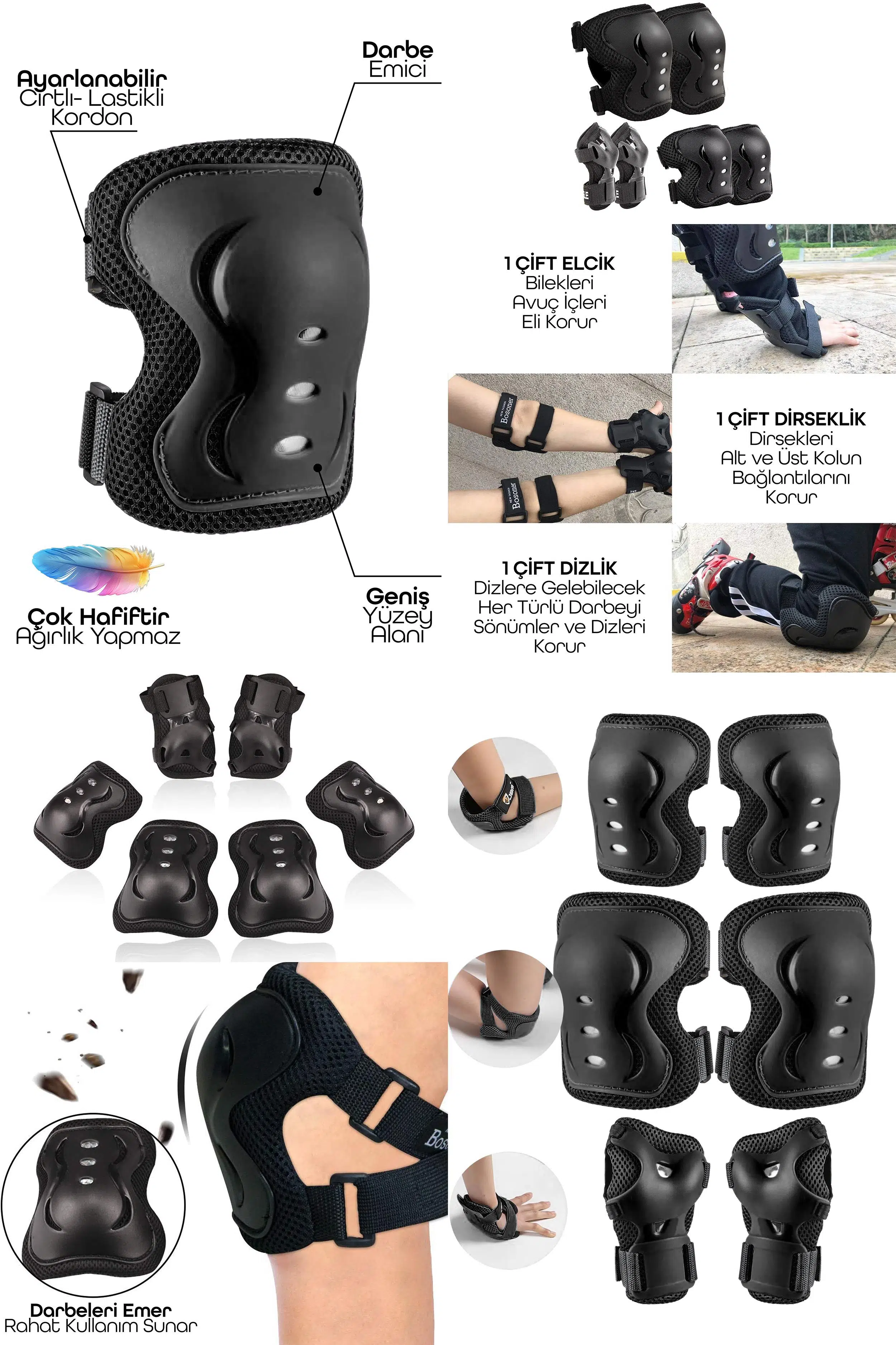 Çocukların yaz aylarında paten, scooter, kaykay ve bisiklet sürerken güvenliğini sağlamak için ideal bir koruyucu set! İşte setin özellikleri: