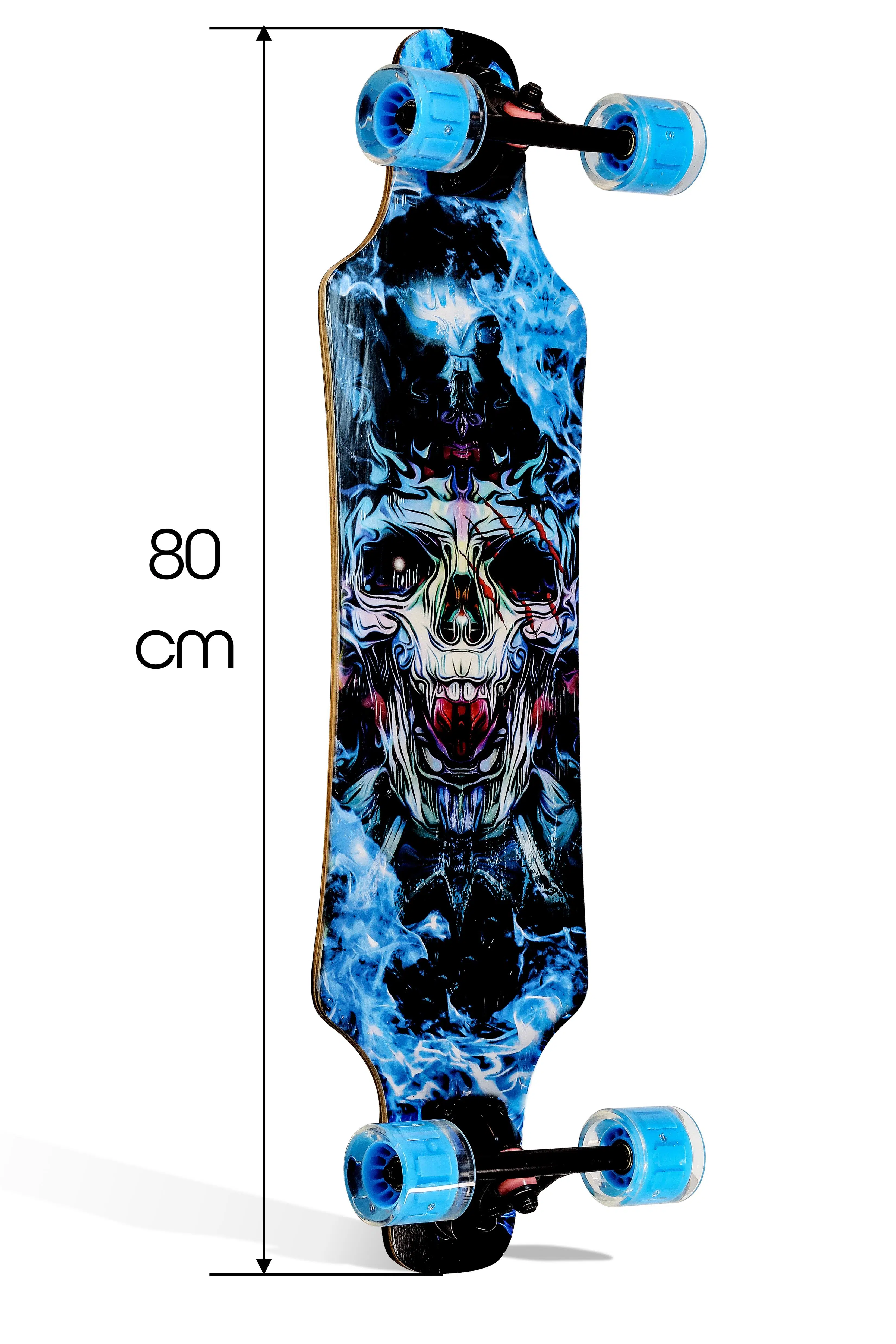 Tasarım: 80 cm uzunluğunda, 20 cm genişliğinde ve 10 cm kalınlığında, ateş ve kafatası desenli, çarpıcı bir tasarıma sahip longboard. Ahşap tipi Akçaağaçtır.