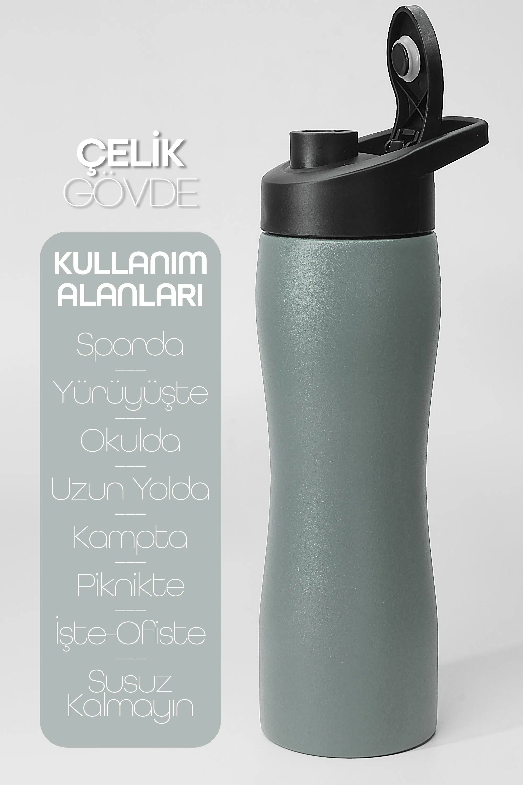 * **Kullanım Alanları:** Spor, yürüyüş, okul, uzun yolculuklar, kamp, piknik ve iş yerinde kullanıma uygundur. Her zaman yanınızda taşıyarak susuz kalmamanızı sağlar.