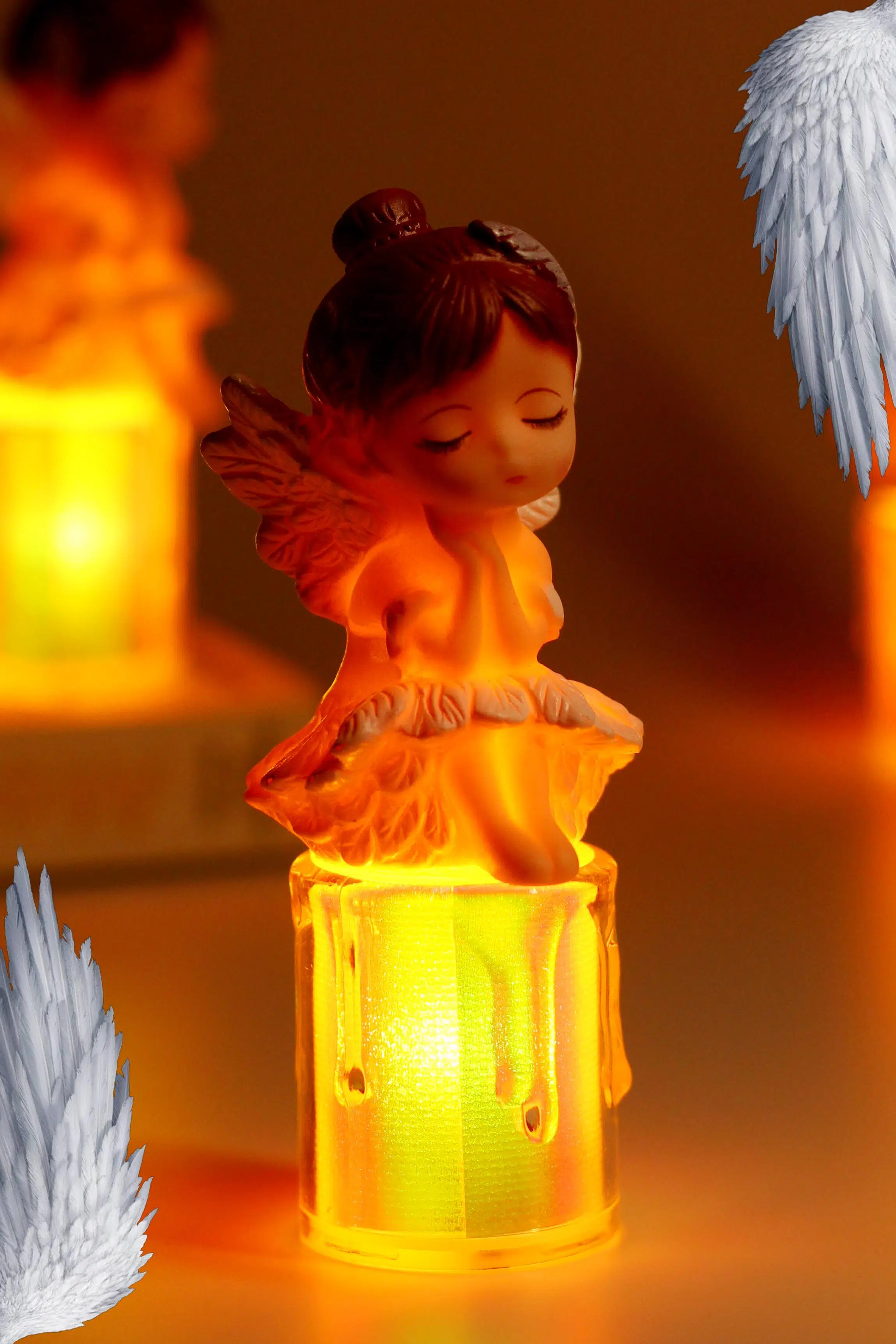 Led Mum Kanatlı Melek Tip Kulplu Dumansız Pilli Alevli Dekoratif Yapay Mum Işıldak Kahve 1037-7