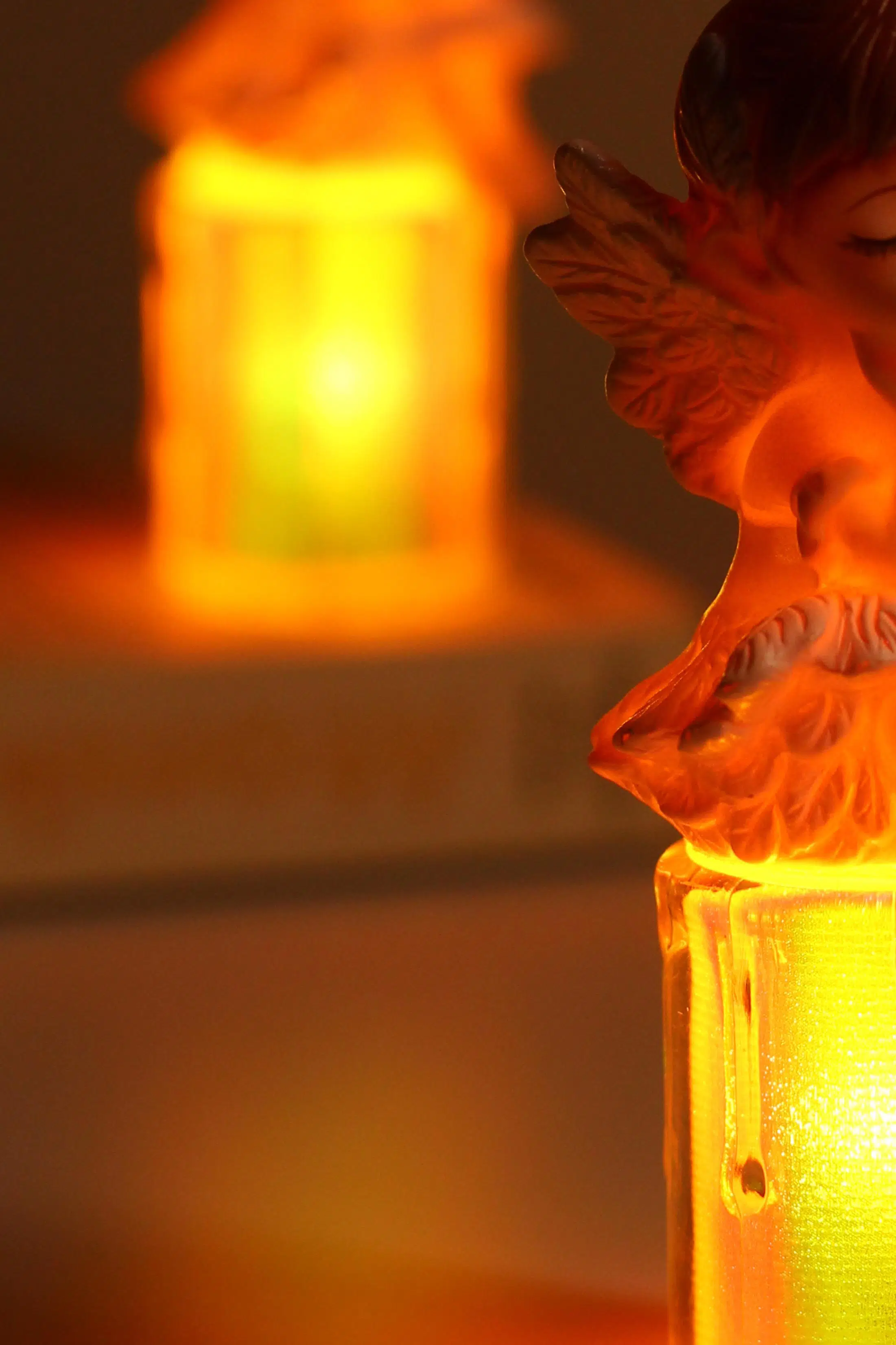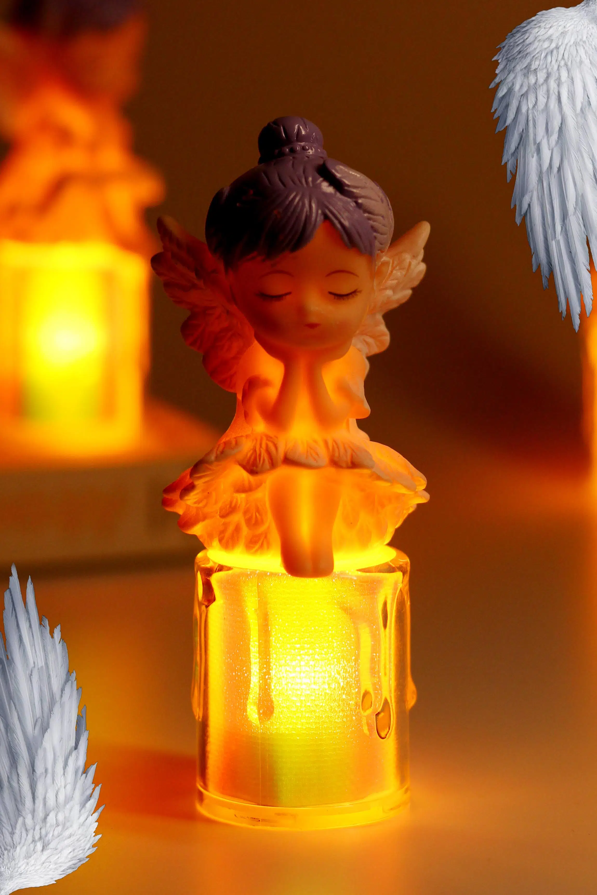 Led Mum Kanatlı Melek Tip Kulplu Dumansız Pilli Alevli Dekoratif Yapay Mum Işıldak Mor 1037-7