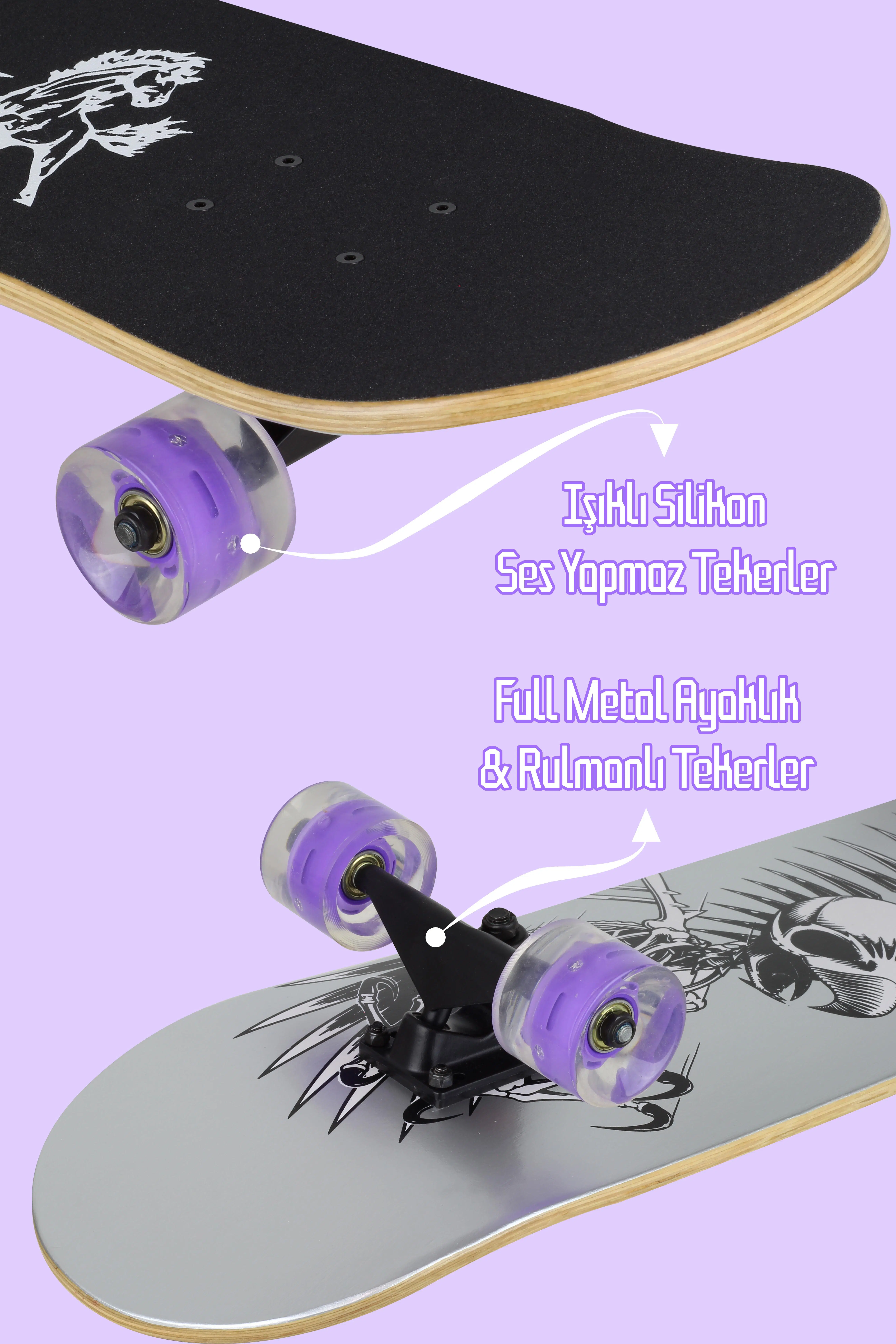 | Etiketler | Ledli Silikon Teker Kaykay Semi-PRO 8 Katman Yüzey Zımparalı Işıklı Kaymaz Skateboard 80 cm Gri |