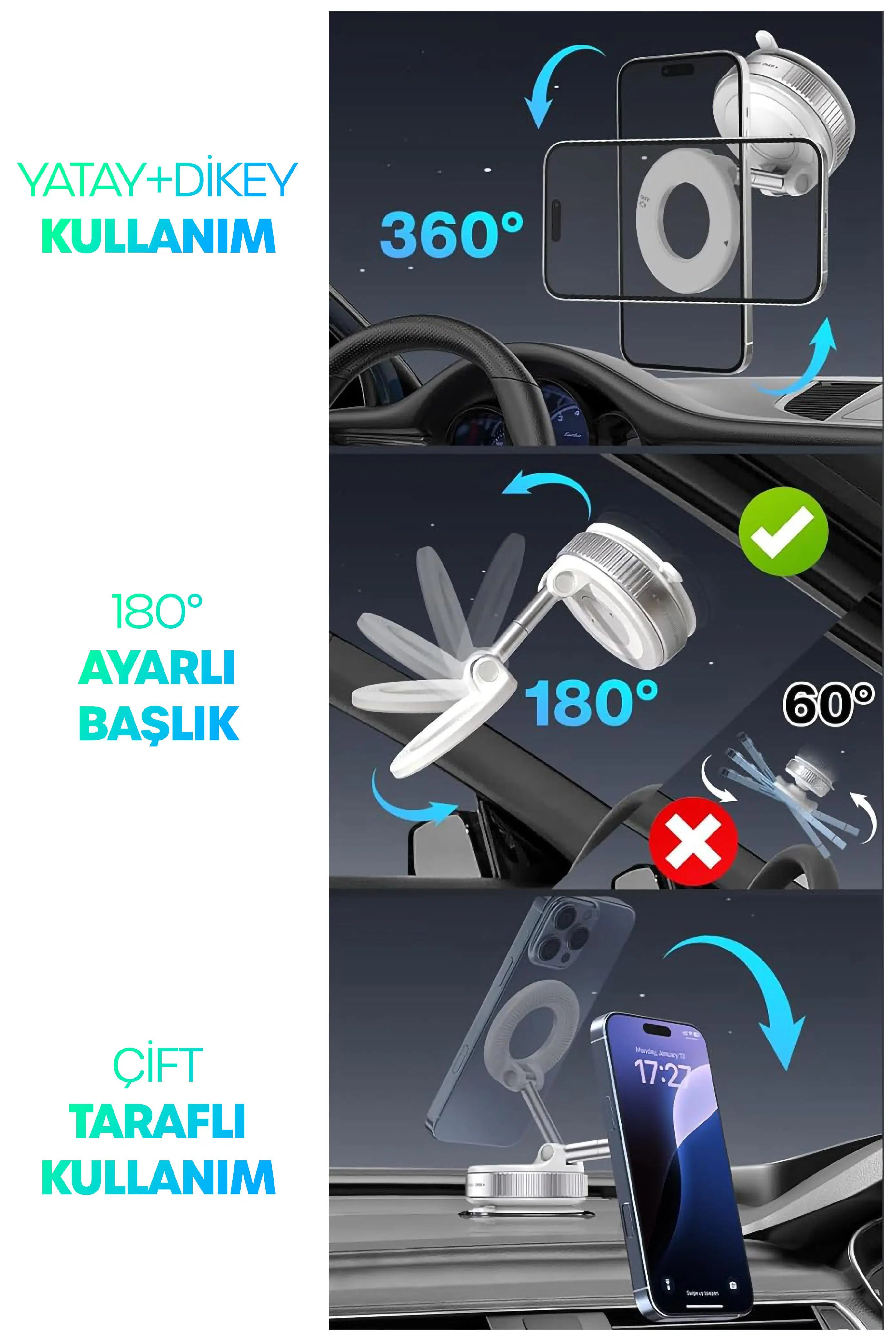 | Etiketler | MagnetPRO 360° Ayarlanabilir Araç İçi Masa Üstü Vakumlu Mıknatıslı Magsafe Telefon Tutucu Beyaz |