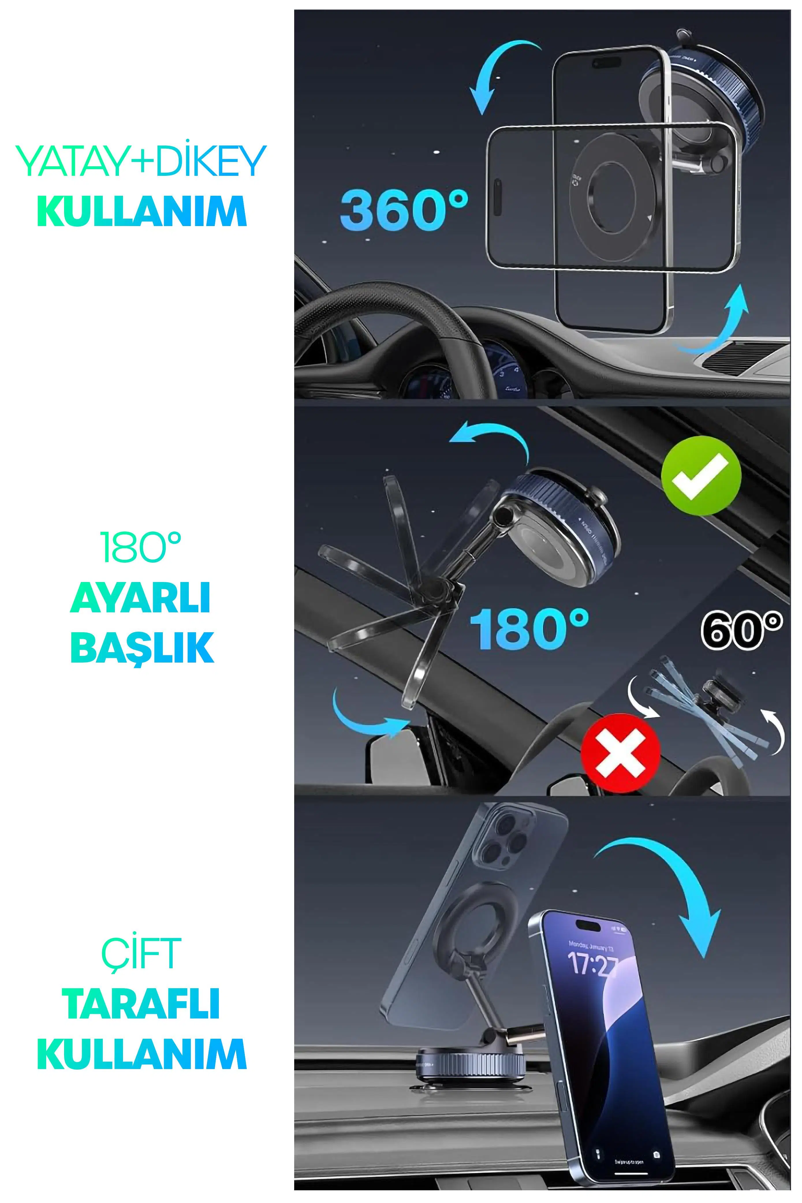 | Etiketler | MagnetPRO 360° Ayarlanabilir Araç İçi Masa Üstü Vakumlu Mıknatıslı Magsafe Telefon Tutucu Siyah |