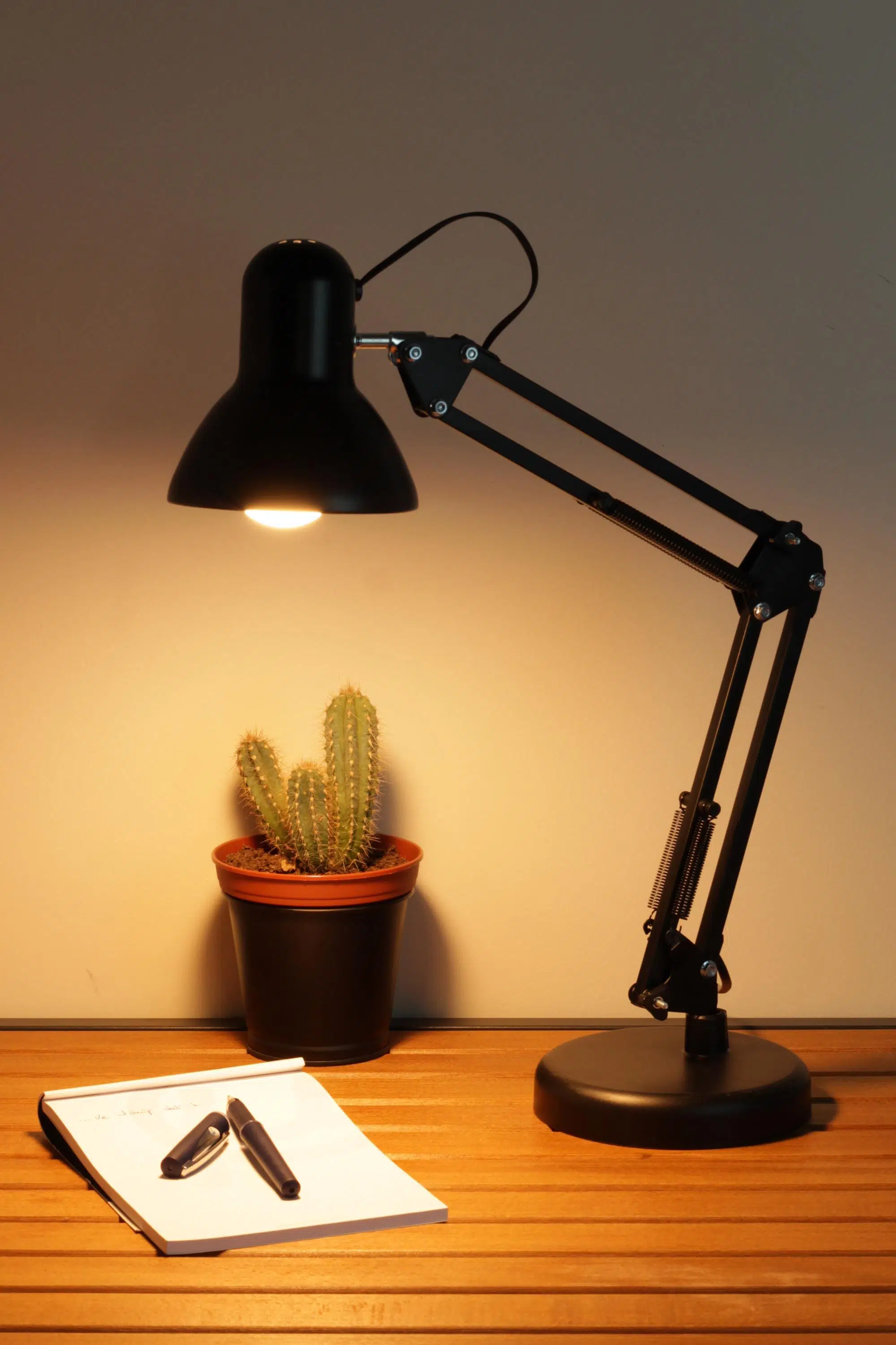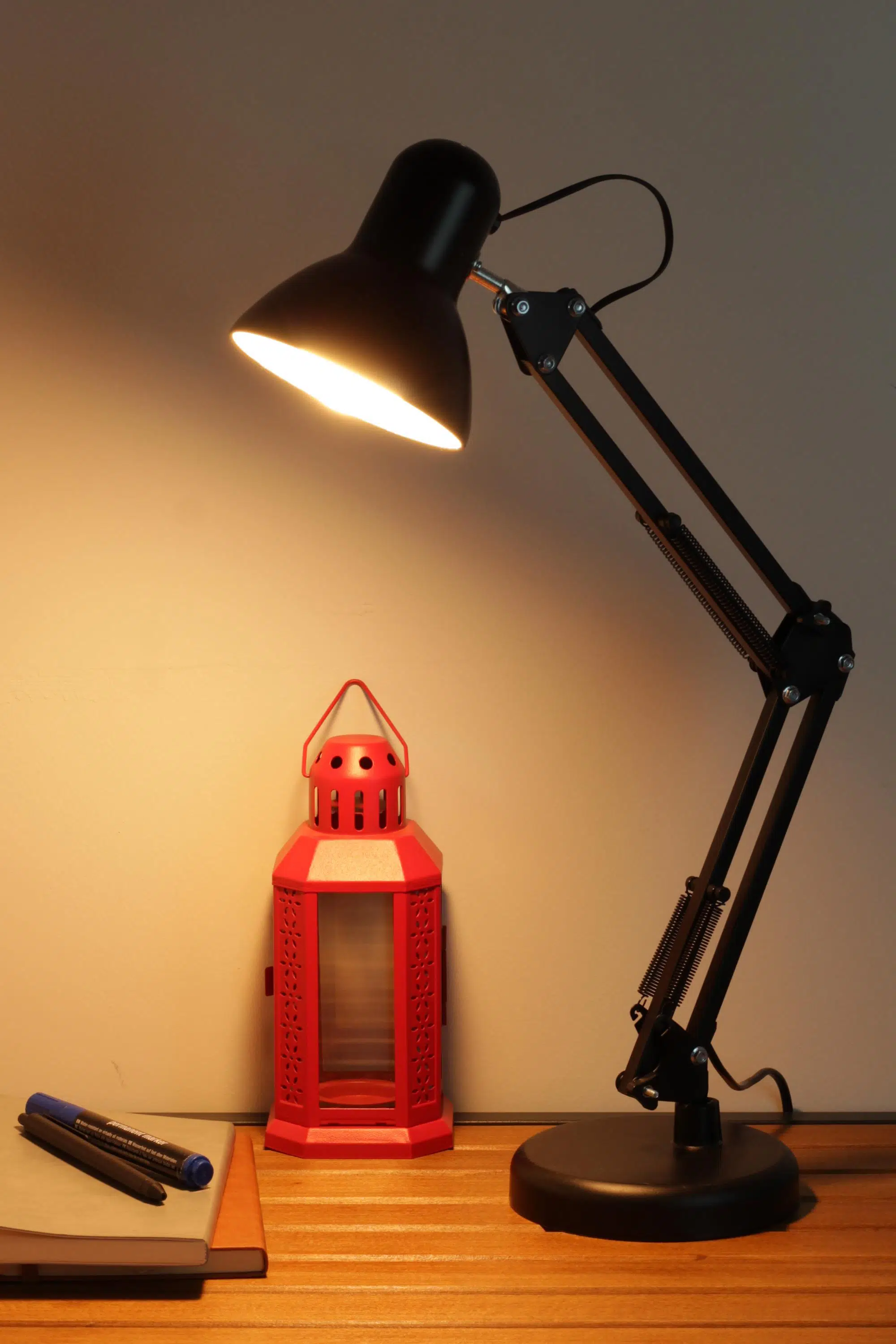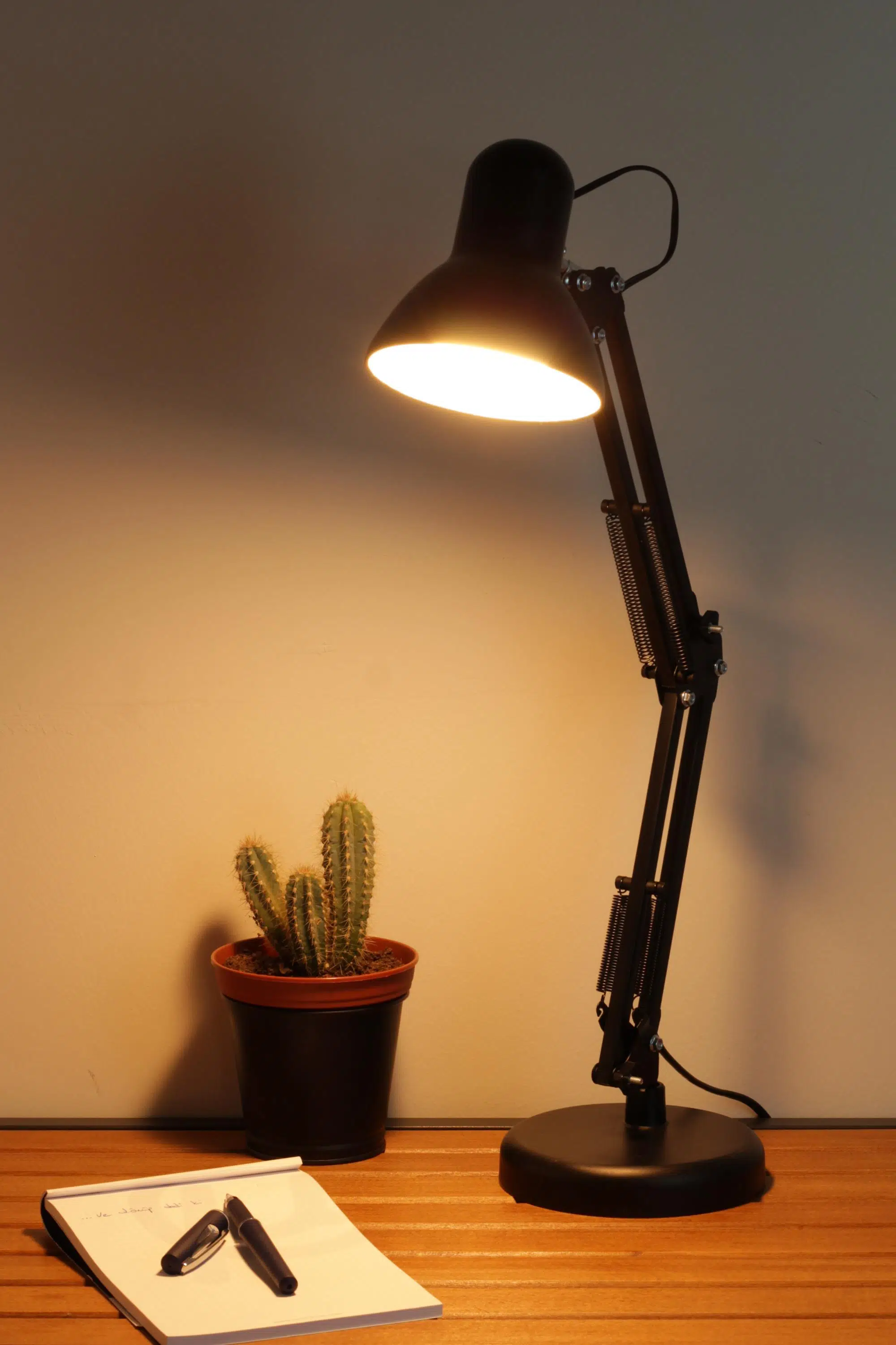 harika bir masa lambası. uzun olduğu için ışık masanızın her yerine dik ve eşit şekilde düşüyor ve bu sayede hiç göz yormuyor