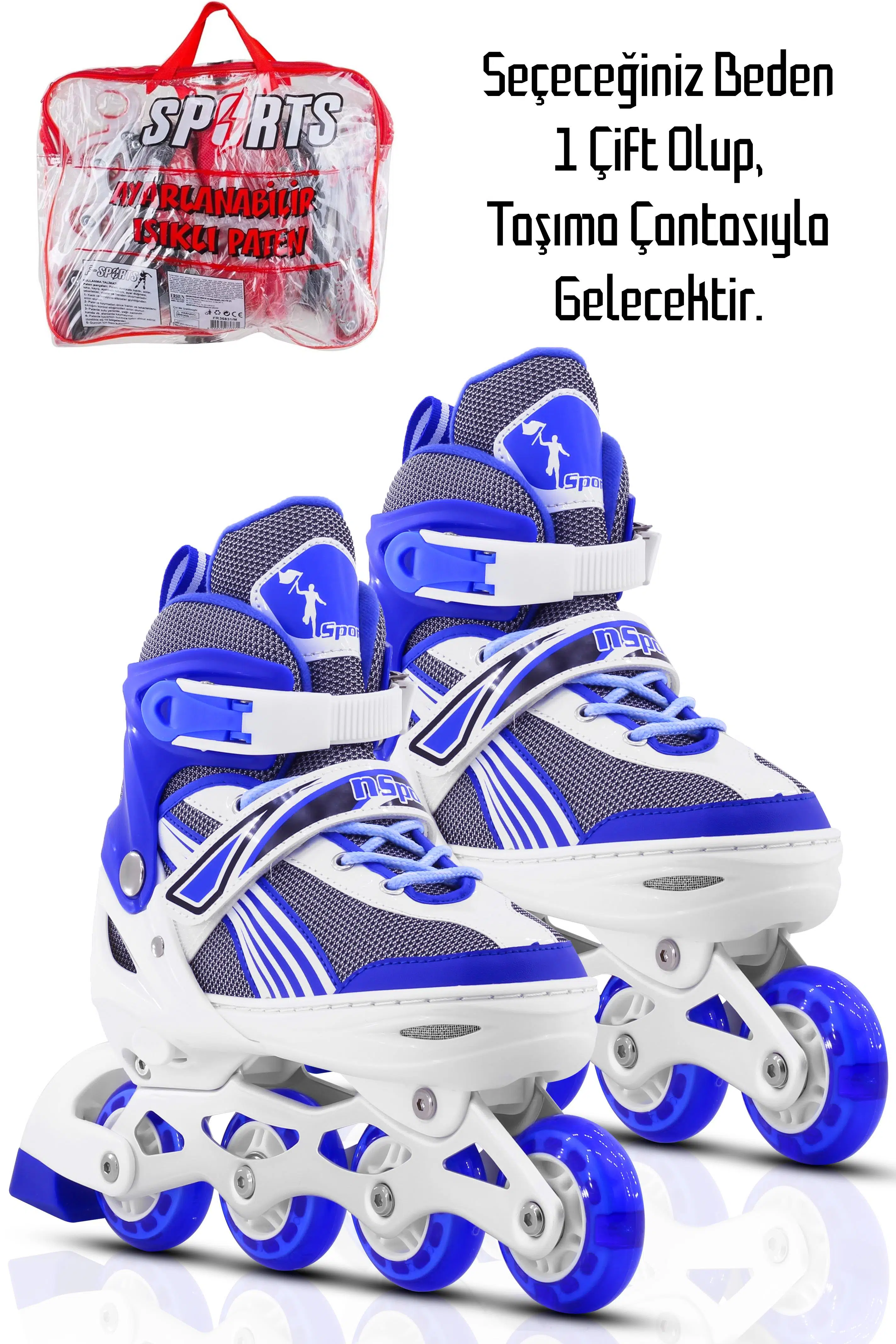 Ayarlanabilir 2+1+1 ve 2+2 Işıklı Metal Alıştırma Pateni Çanta.