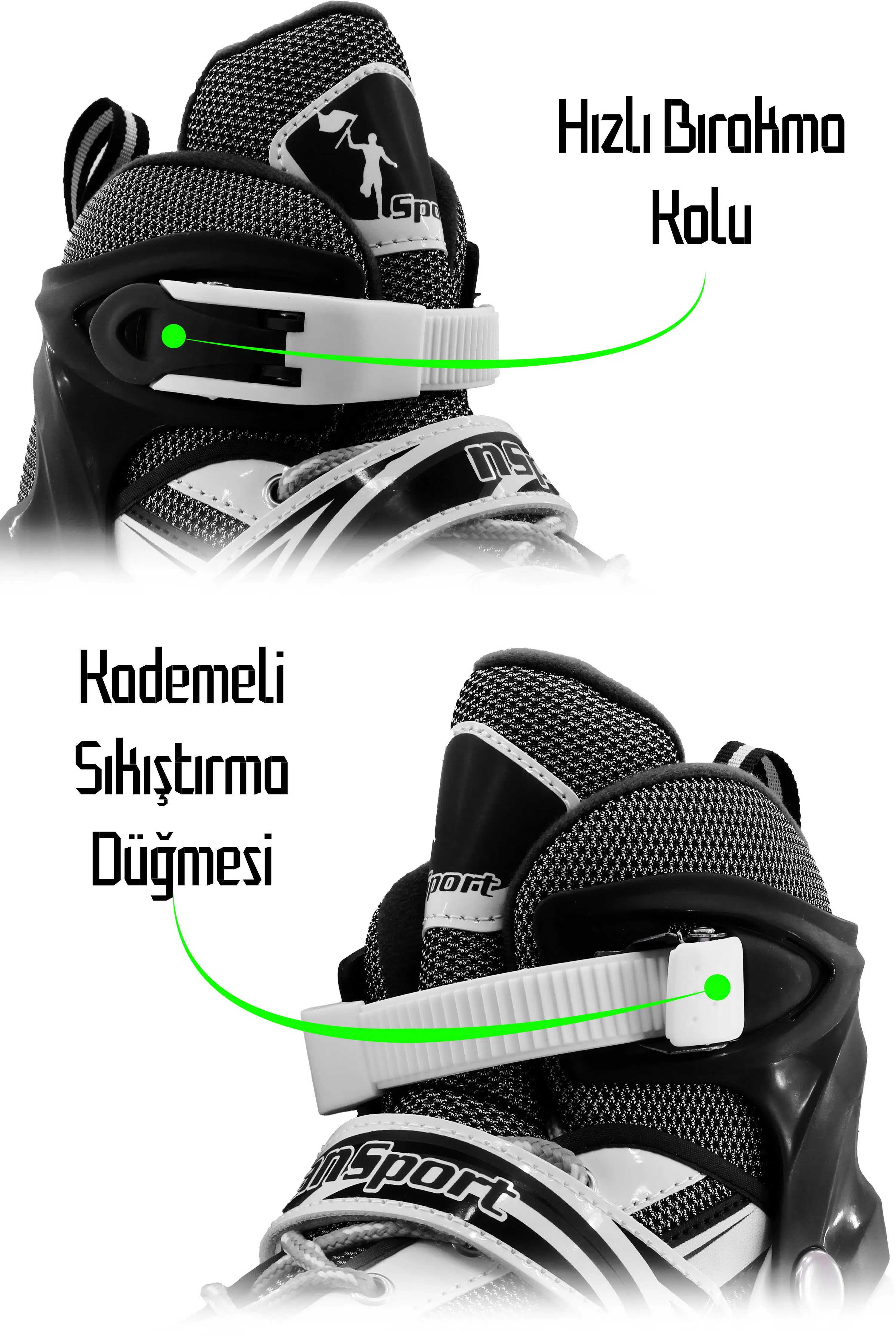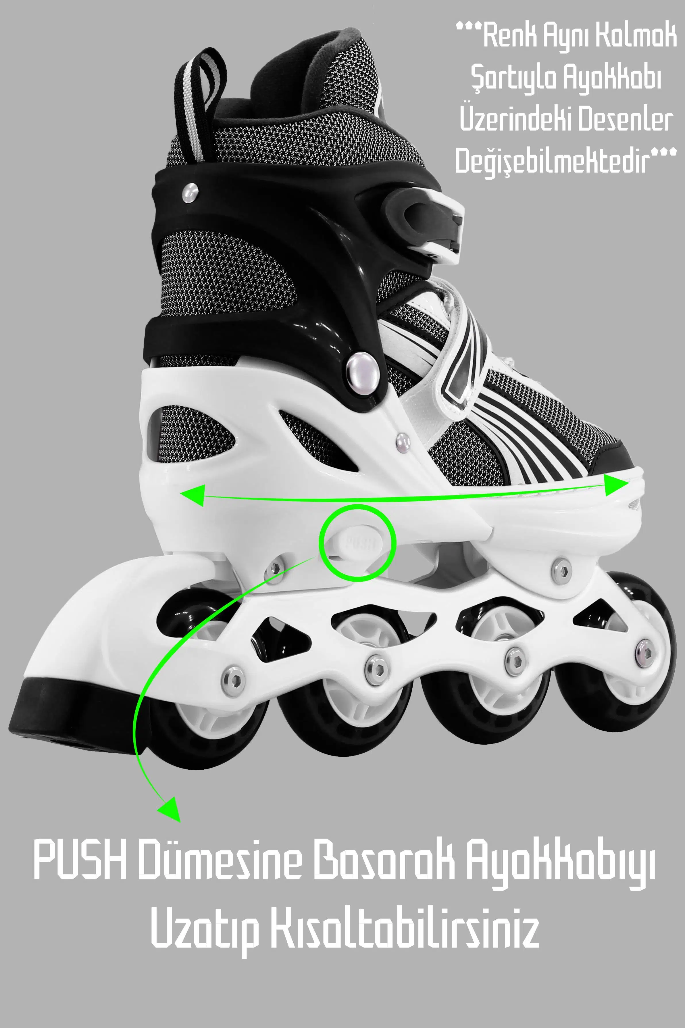 Ürünün küçük yada büyük gelmesi halinde topuk kısmında bulunan PUSH yazılı kısma basılı tutup patenin burun kısmından tutup ileri geri çekerek numara ayarlaması yapabilirsiniz.