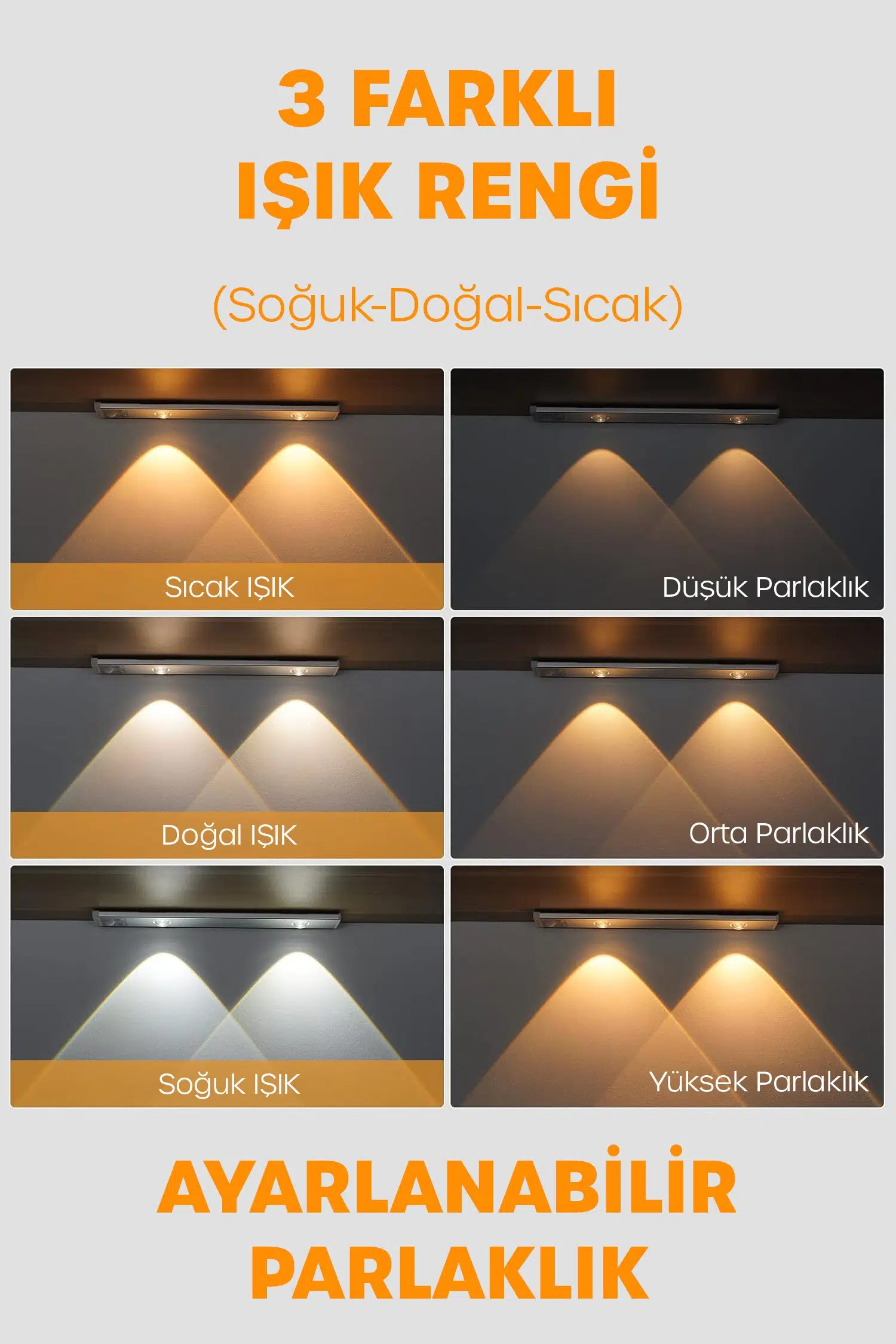 Ürün, 3 farklı ışık rengi (sıcak, doğal ve soğuk) sunarak ortamınıza uygun aydınlatmayı seçmenizi sağlar. İster sıcak ve yumuşak bir ambiyans oluşturun, ister daha net ve güçlü bir ışık tercih edin.