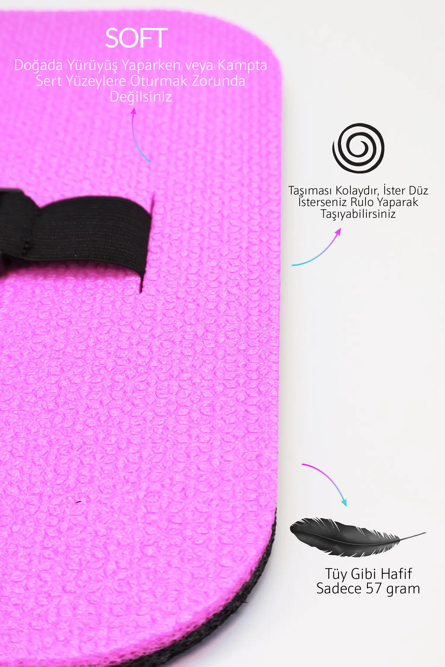 Doğada gezerken, kamp yaparken, trekking sporlarında kullanabileceğiniz çok amaçlı oturma minderi.