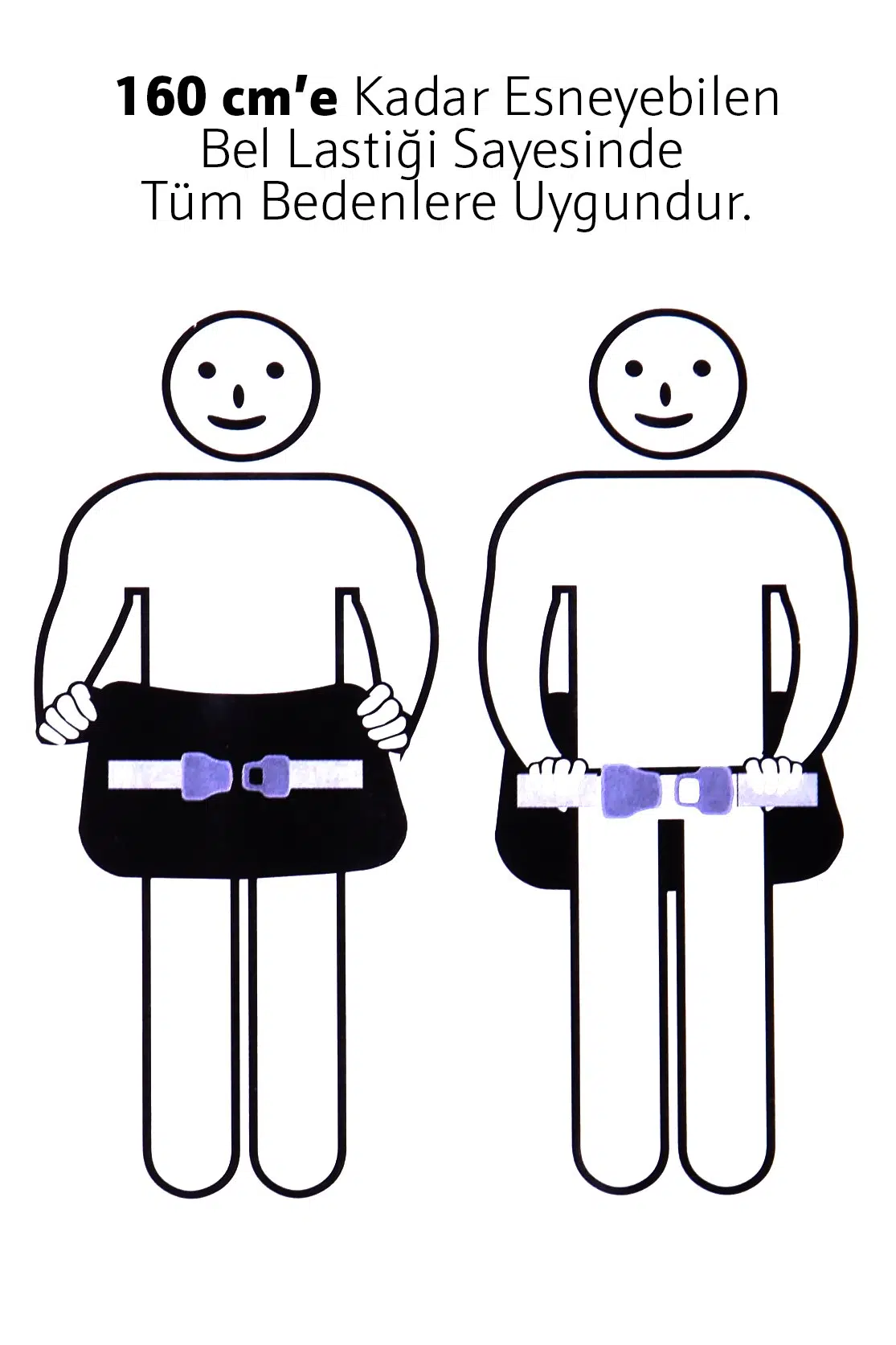 Bel Lastiği ayarlanabilirdir ve tüm bedenlere uygundur.
