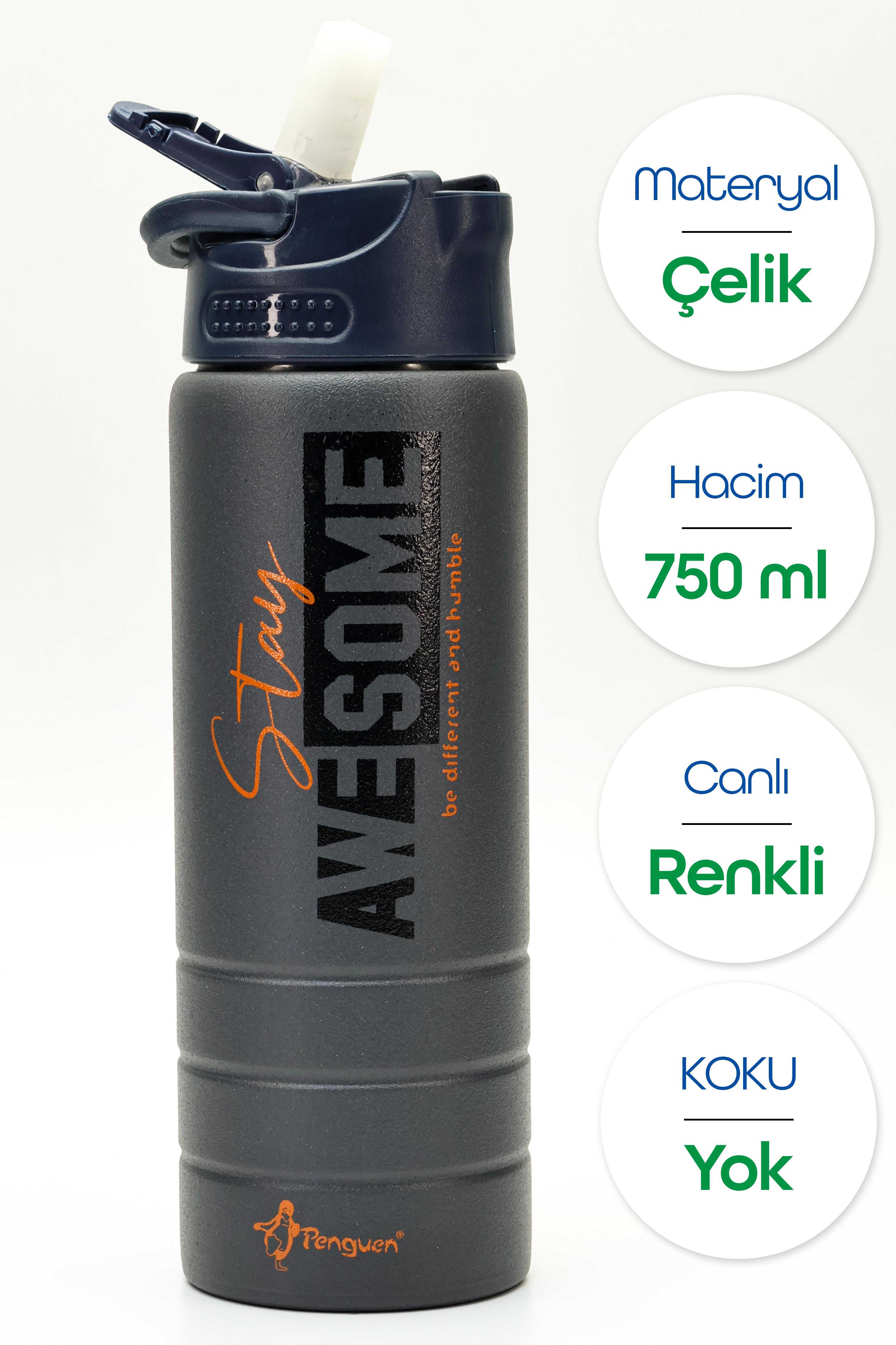 750 ml Paslanmaz Çelik Spor Matara (Pipetli – Sızdırmaz Kapak, BPA Free)