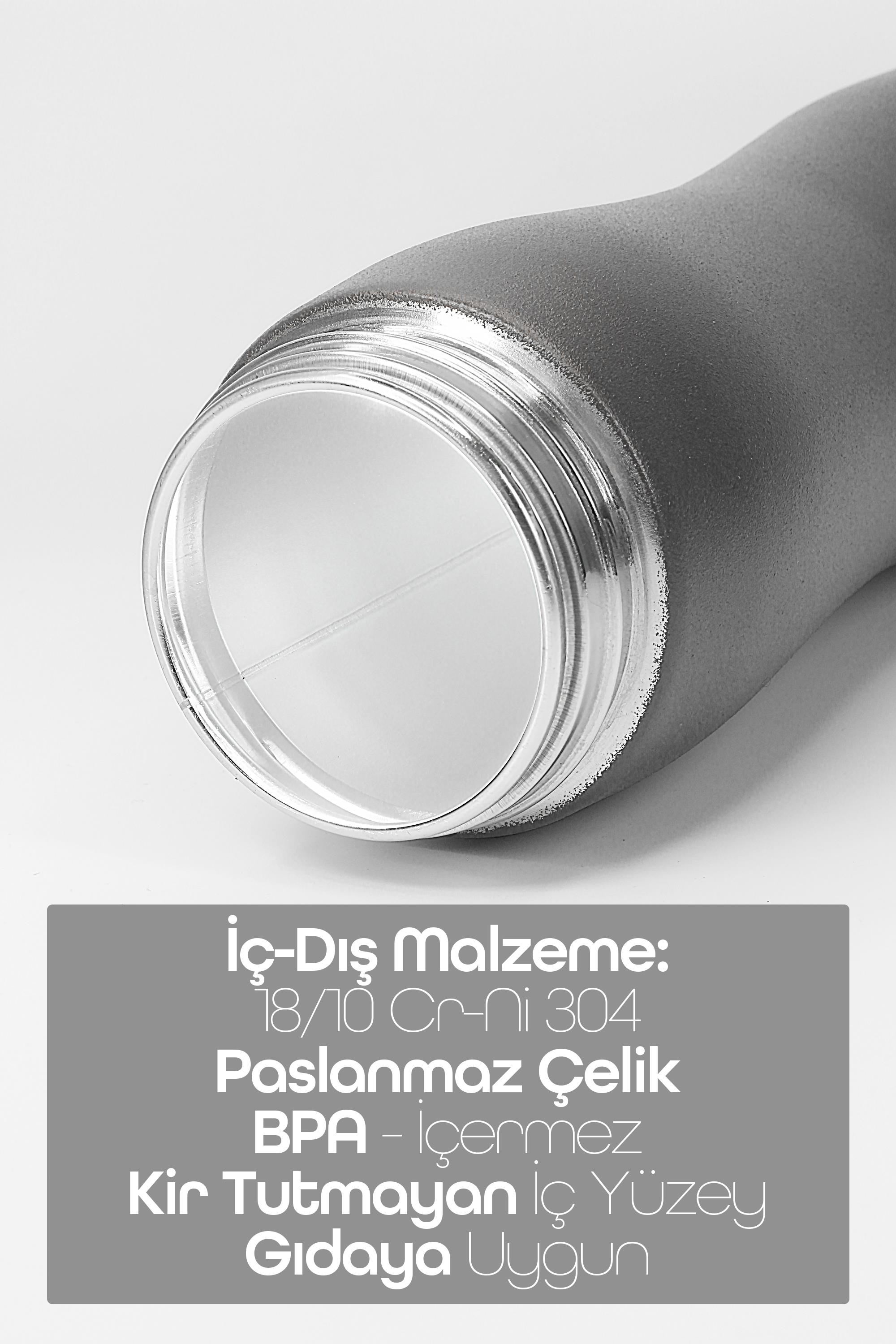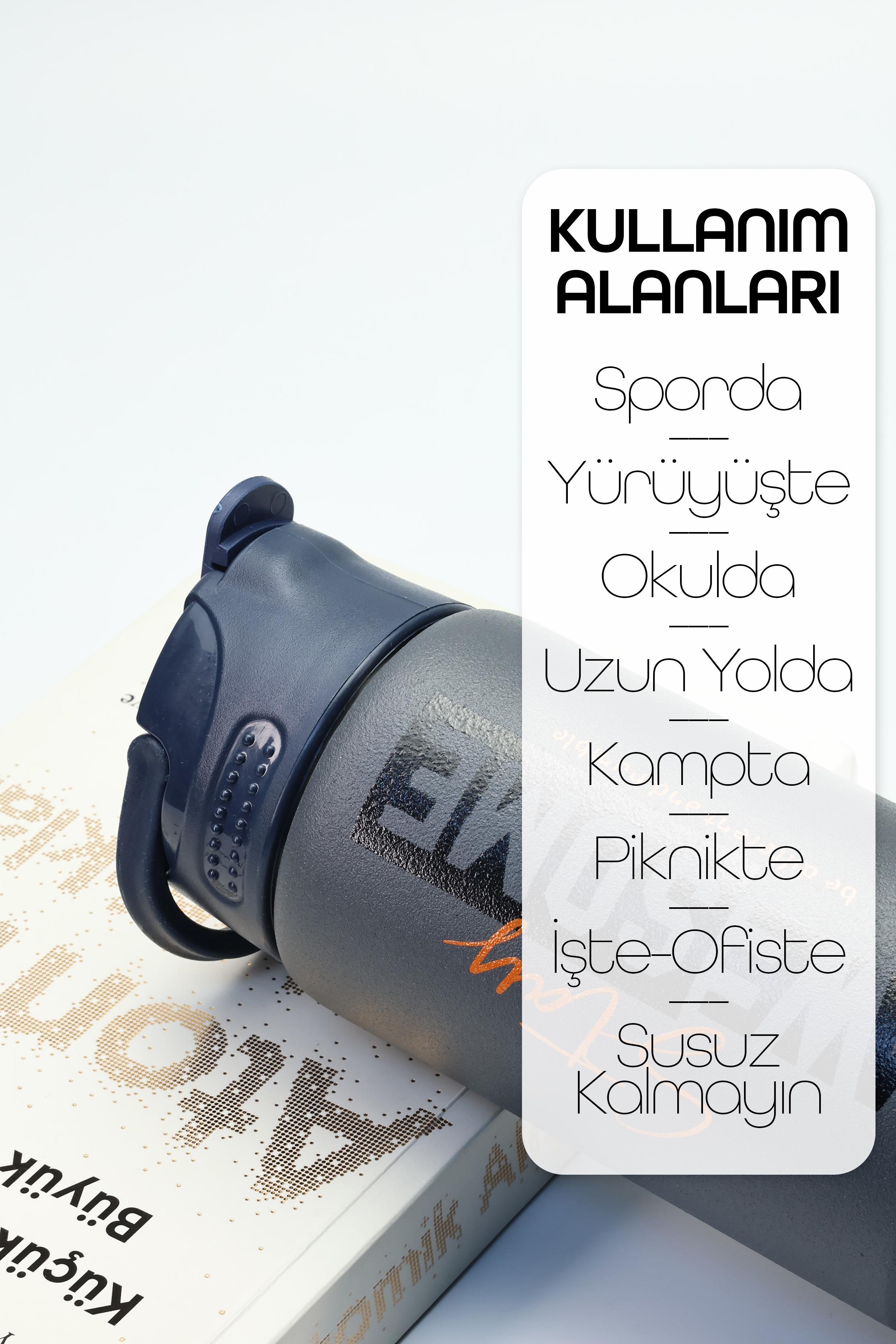 Gün boyu suyunu yanında taşı, koku-tat derdi yaşama. İç-dış 18/10 (304) paslanmaz çelik gövde, pipetli sızdırmaz kapak ve pratik taşıma halkasıyla spor, okul, iş ve yol için net çözüm.