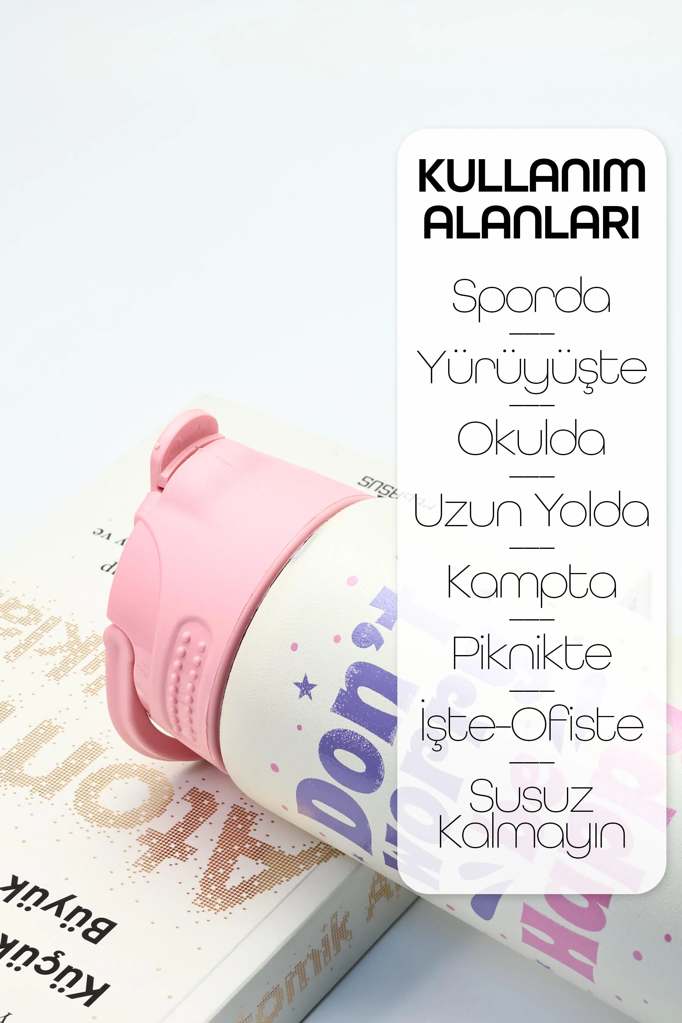 İçim:Pipetli flip-top ağız – yürürken/araçta kolay içim.