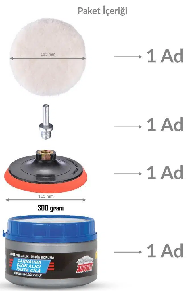 | Etiketler | Polisaj Yünü Pasta Cila Seti 4lü Matkap Uyumlu UV Korumalı Çizik Alıcı Pasta Cila Macunu Seti |