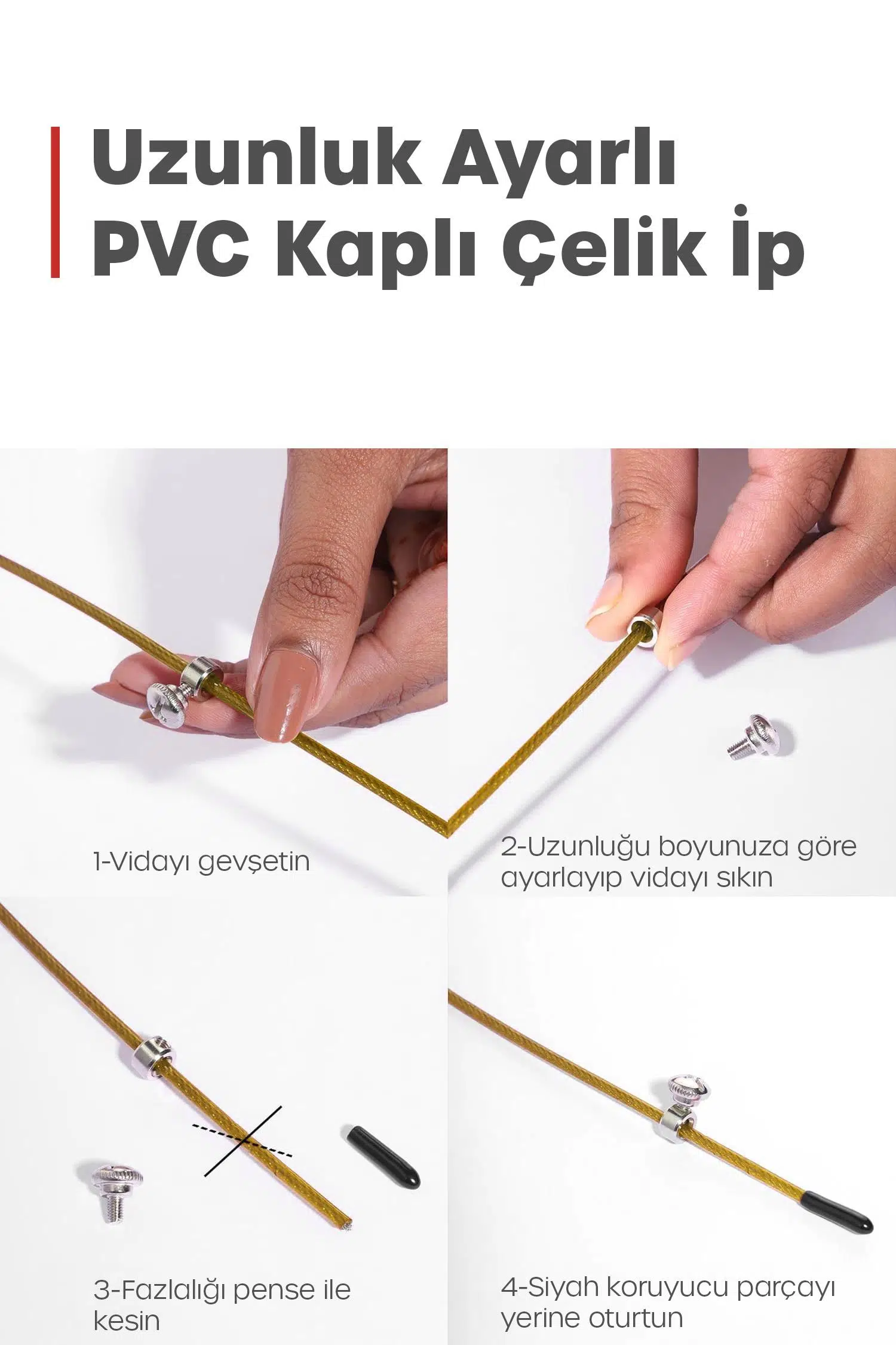 Malzeme: Metal tutamak + PVC kaplı çelik ip