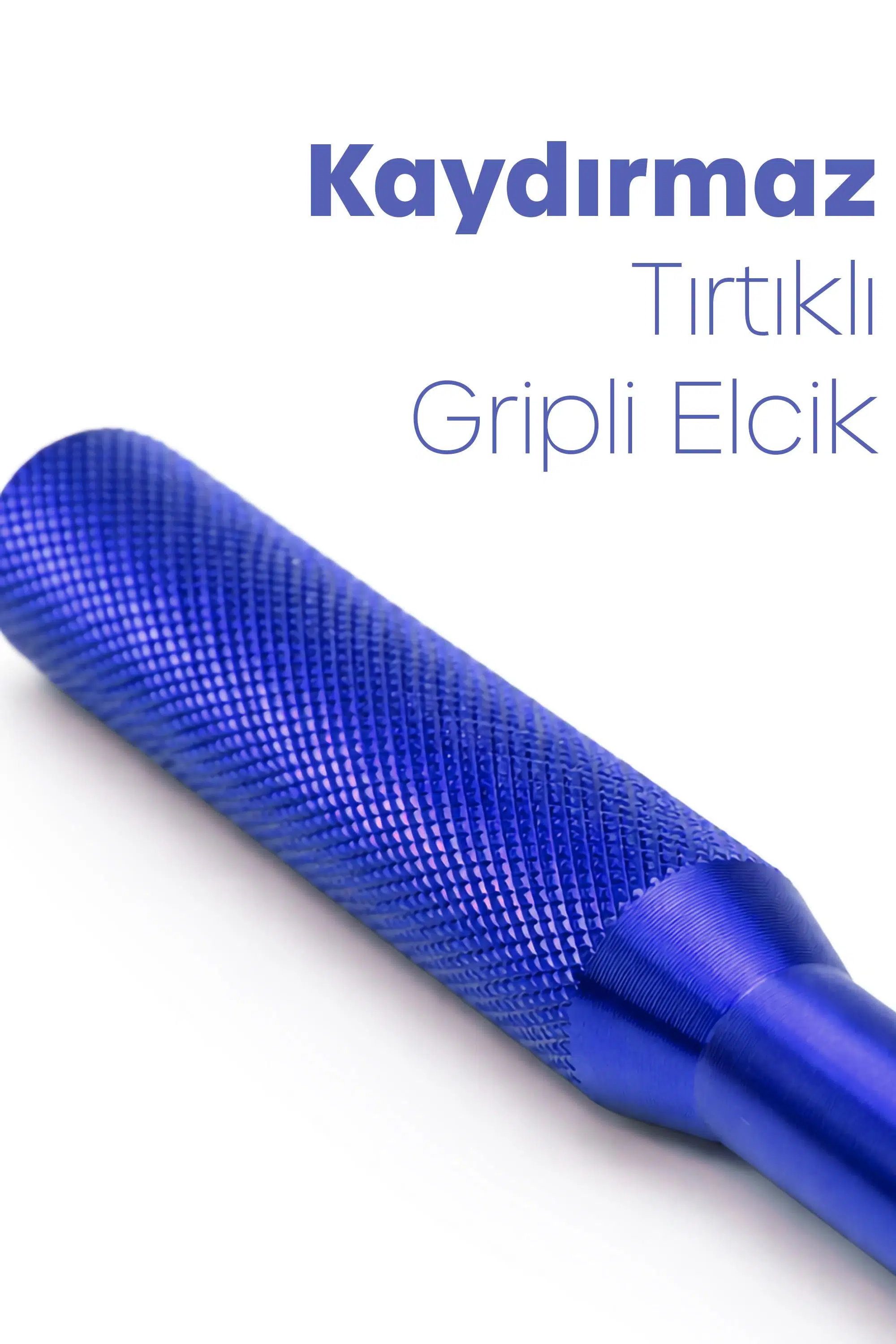 Tırtıklı metal yüzey sayesinde terli elde bile daha güvenli tutuş sağlar.