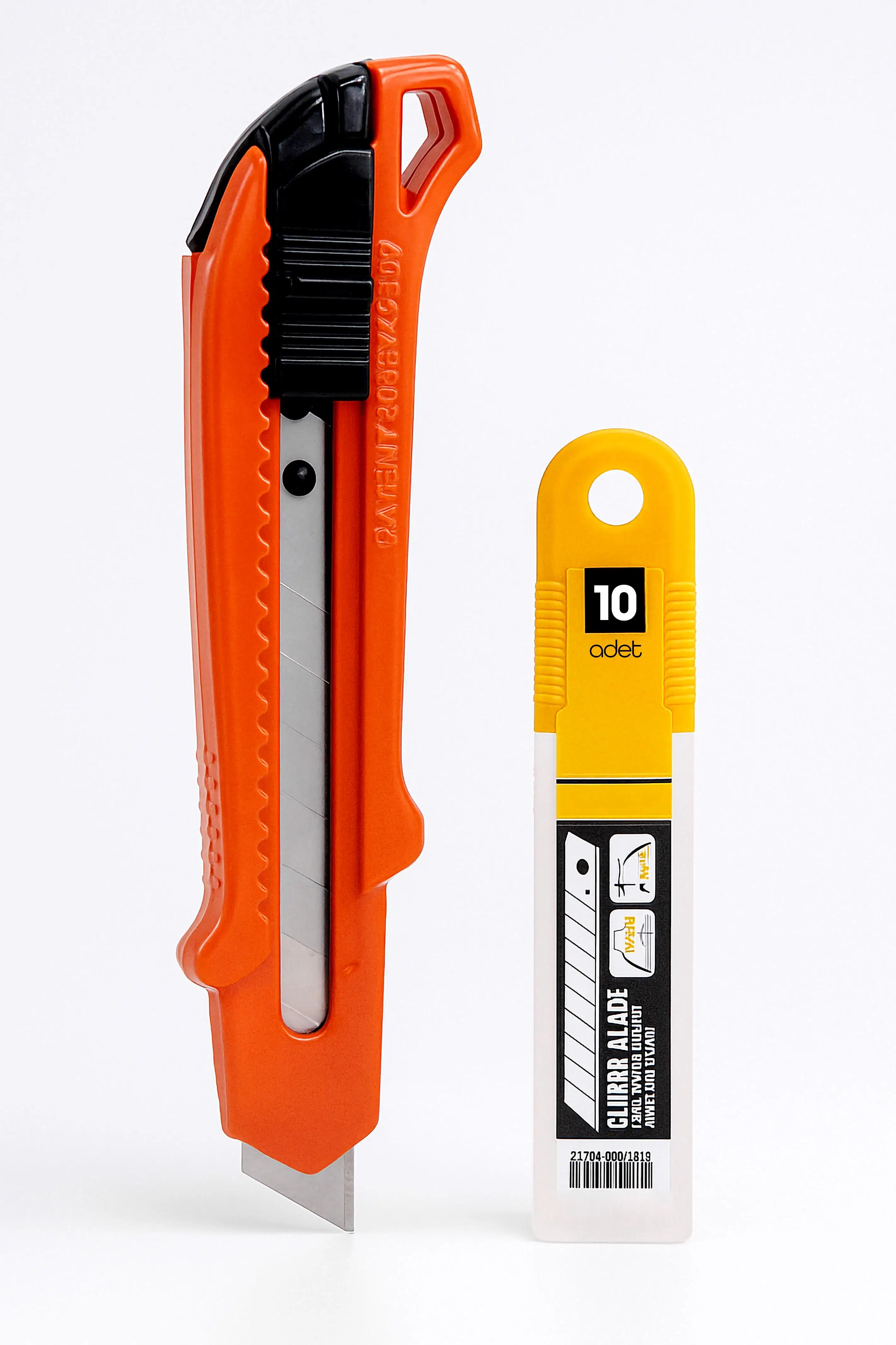 Keskin 18 mm Bıçak: Standart 18 mm genişliğinde bıçak, her türlü kağıt, karton, plastik ve ambalaj kesimi için idealdir.