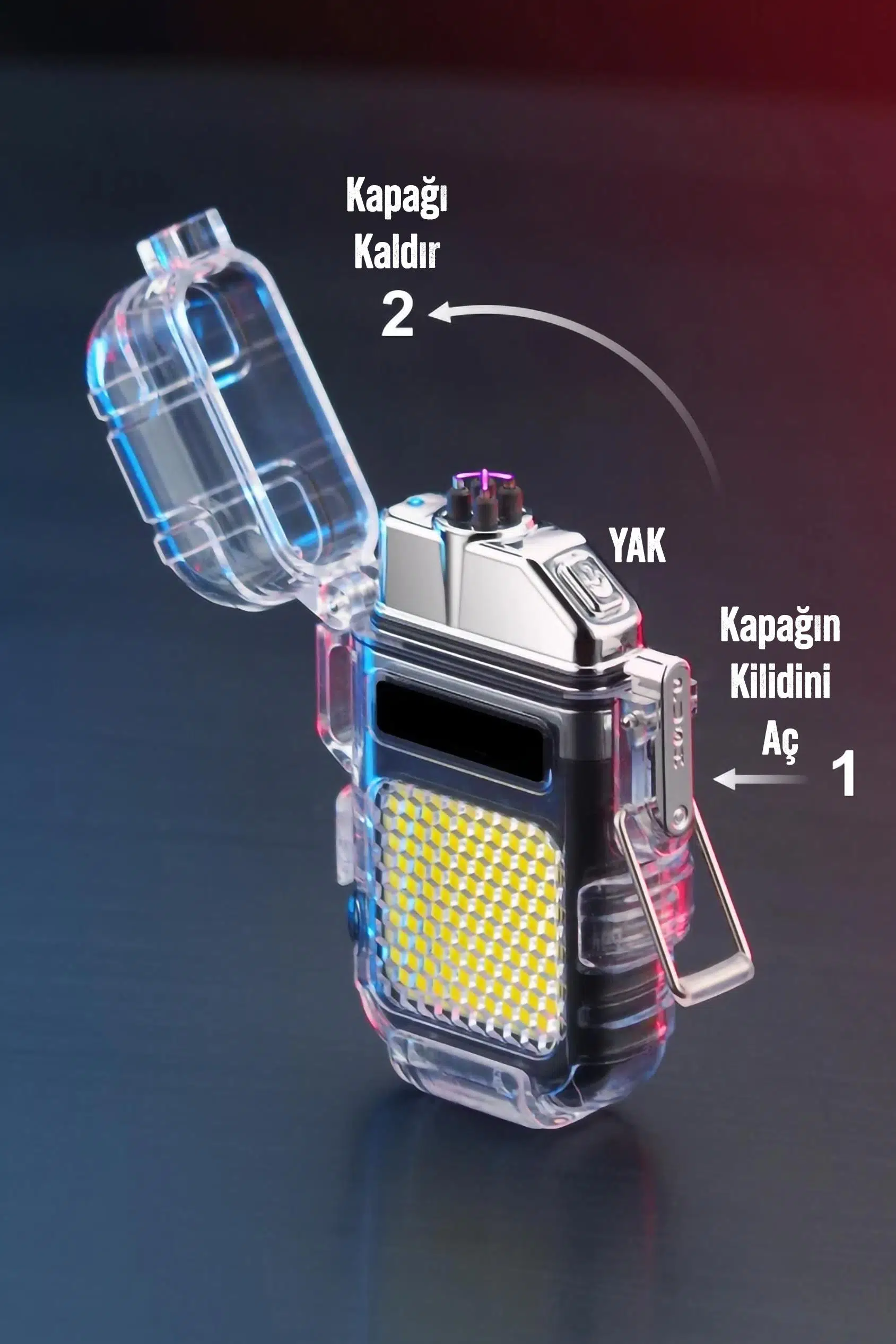 Bu ürün, hem çakmak hem de fener olarak kullanılabilen çok fonksiyonlu bir cihazdır, dış mekân aktivitelerinde veya günlük kullanımda ideal bir yardımcıdır.