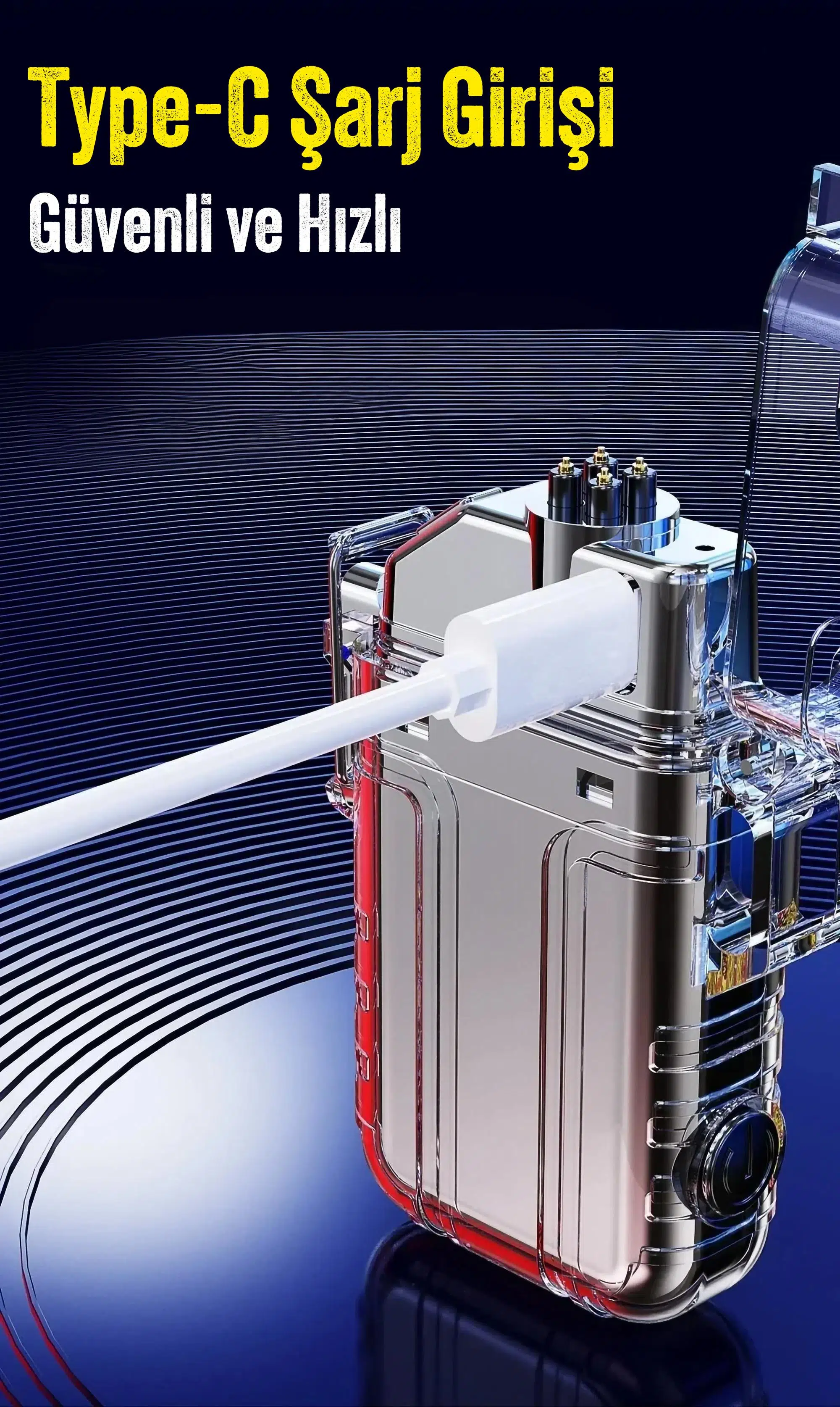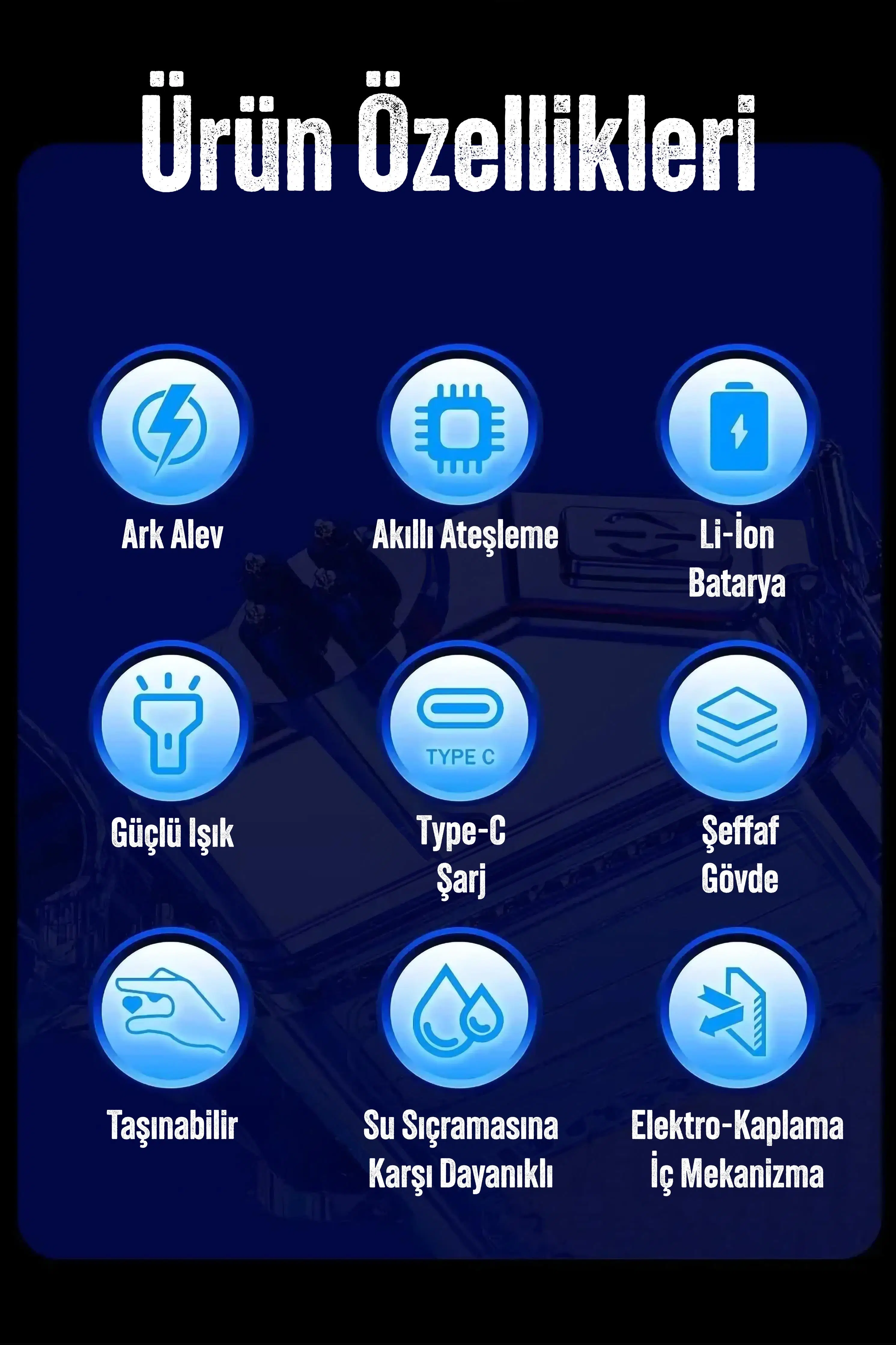 Ark Alev: Yüksek güçlü bir ark alevi üretir, bu da çakmağın rüzgâra karşı dayanıklı olmasını sağlar.