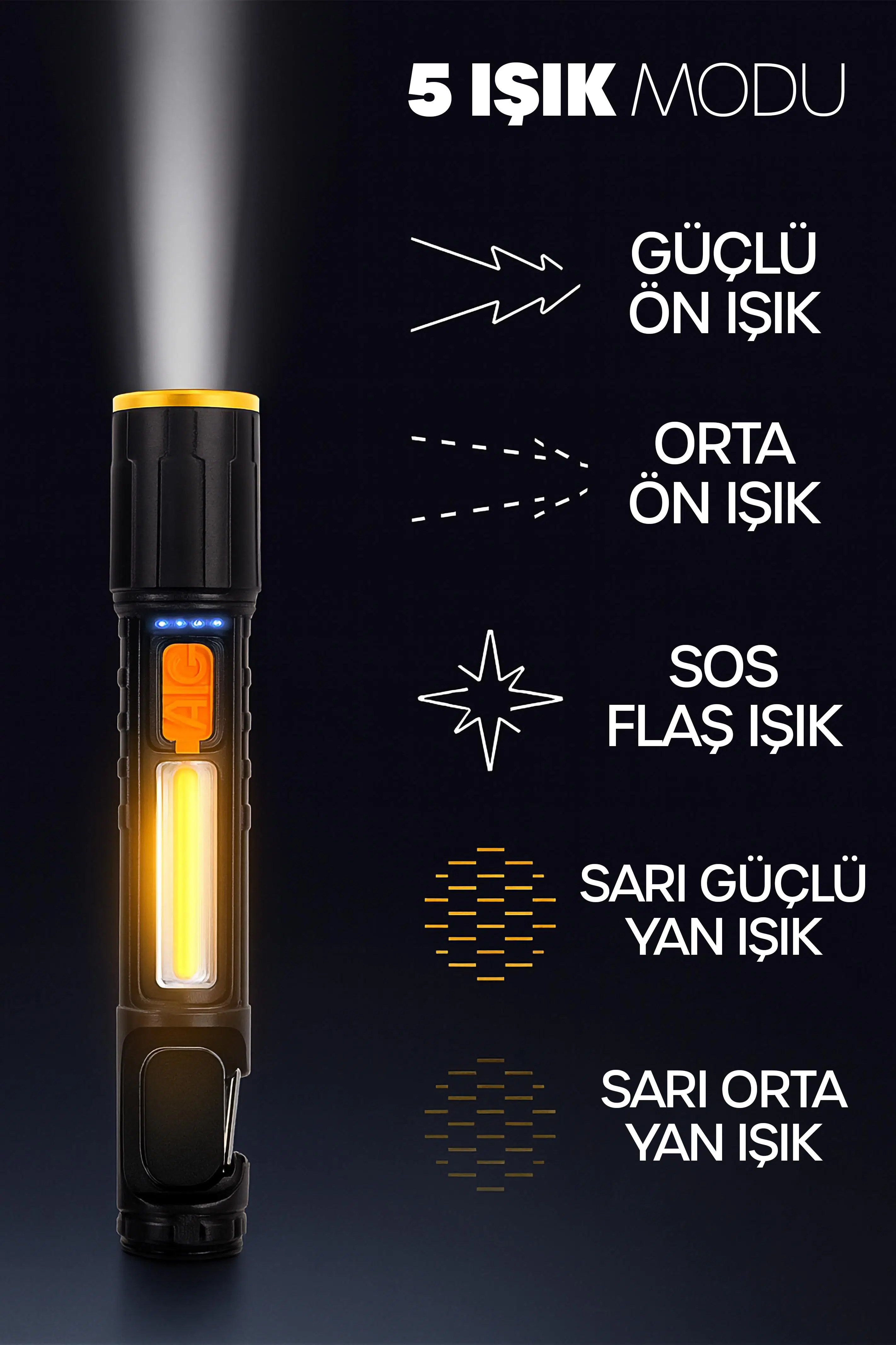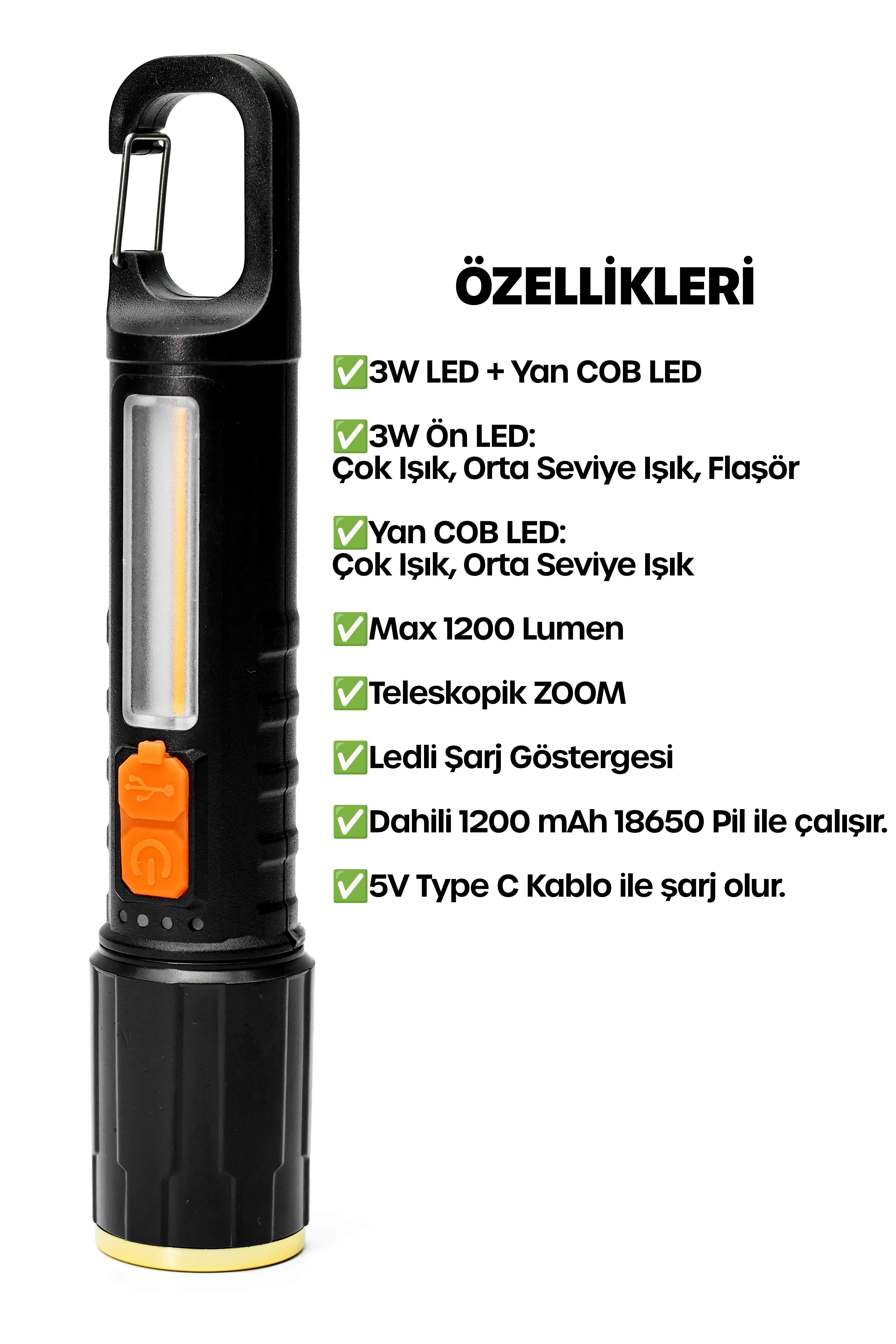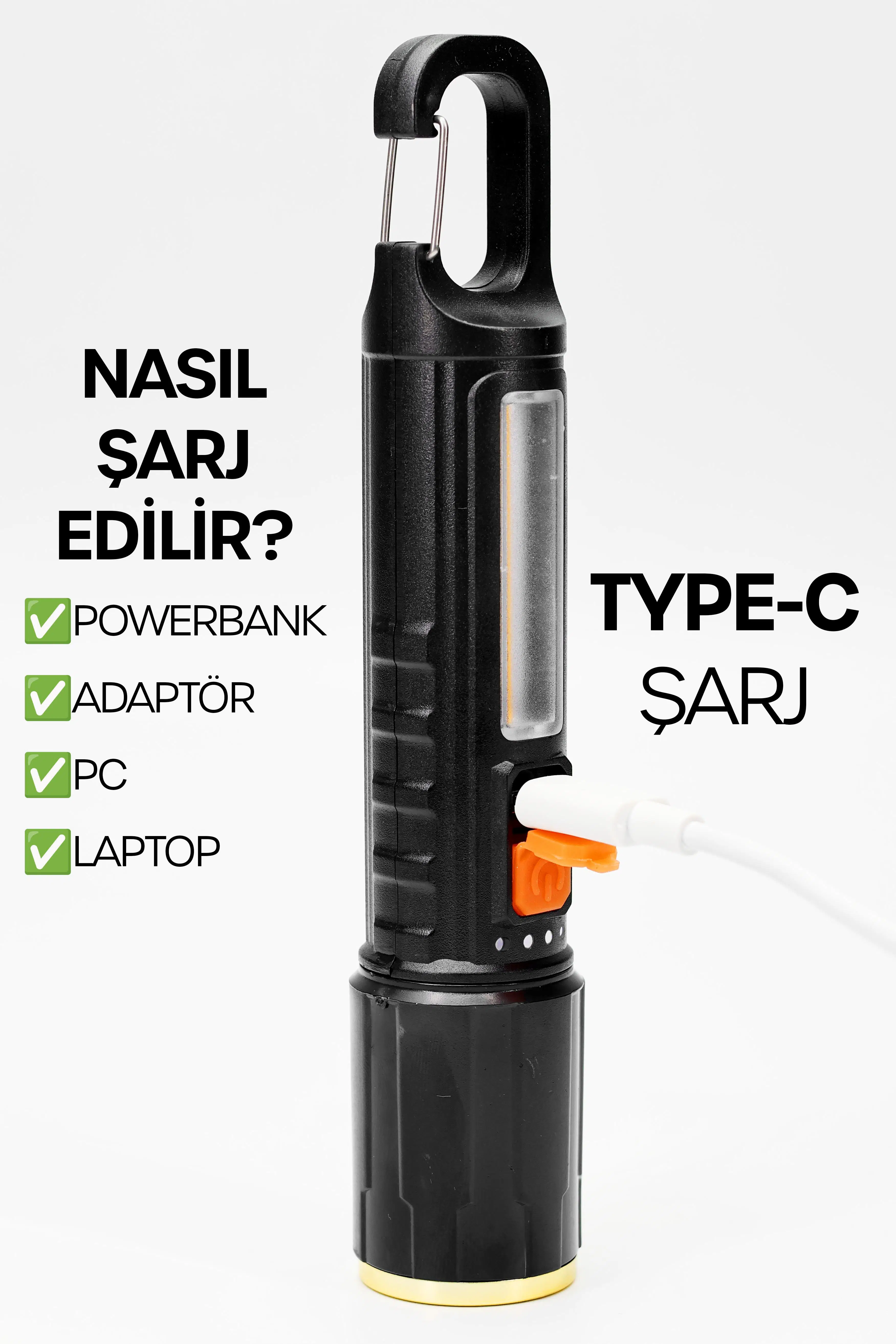| Etiketler | Şarjlı EL Feneri 5 MOD Karabina Askılı COB LED Kamp Lambası Acil Durum Işığı 7149 |