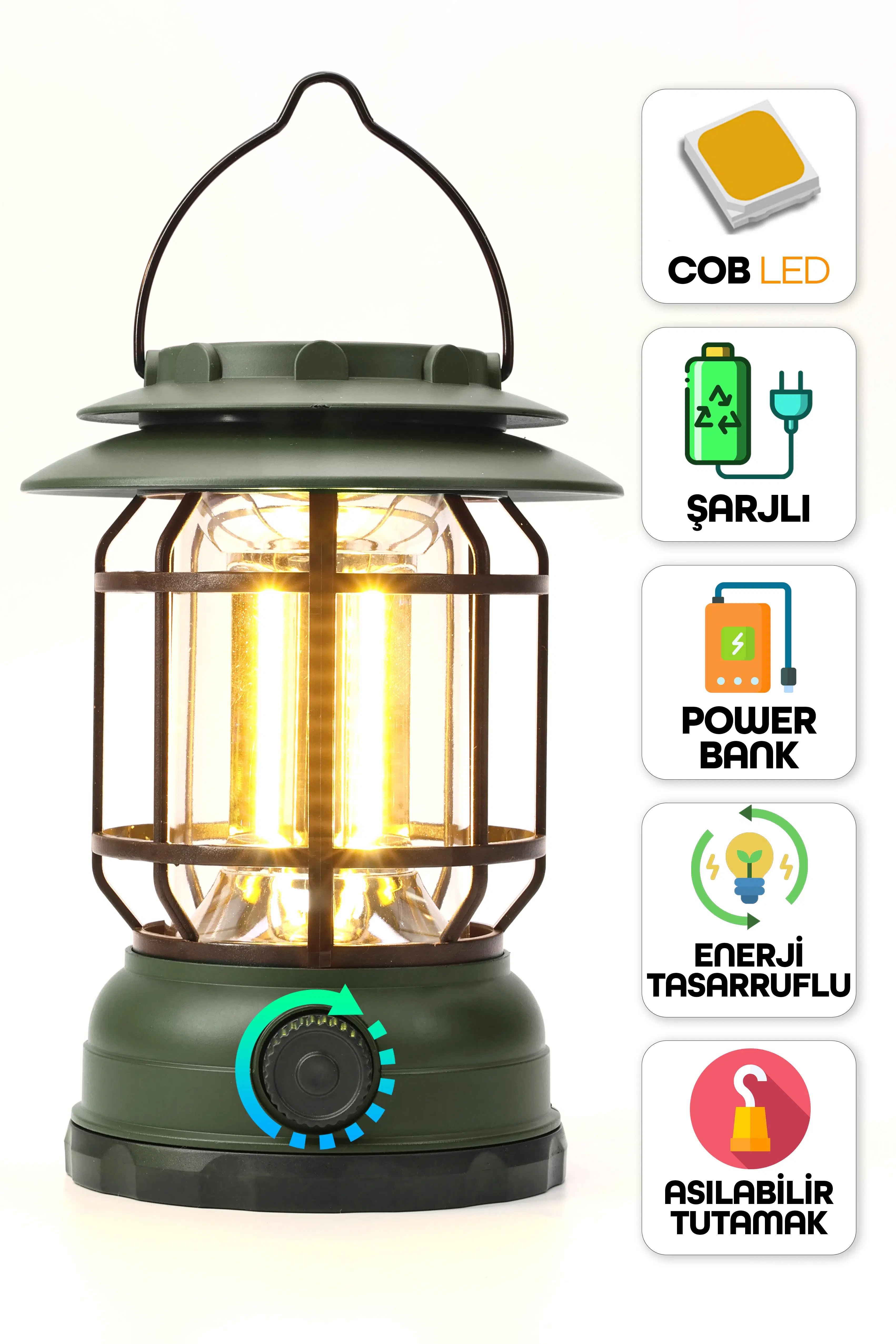 | Etiketler | Şarjlı Kamp Lambası Solar LED Işık Ayarlı Askılı El Feneri Portatif Işıldak Gece Lamba Yeşil PR27 |