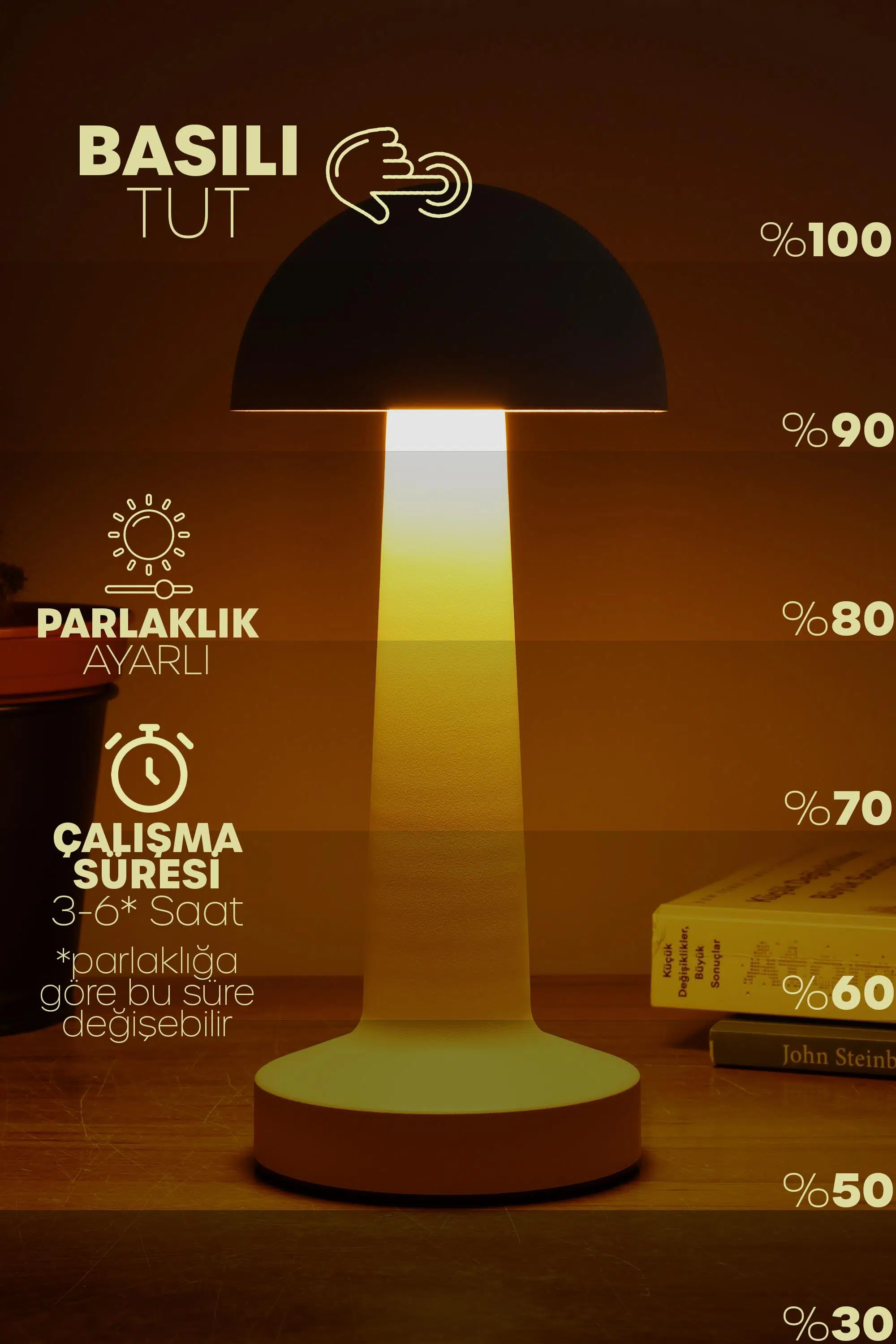 Basılı Tutma: Kademeli parlaklık ayarı (%30 – %100)