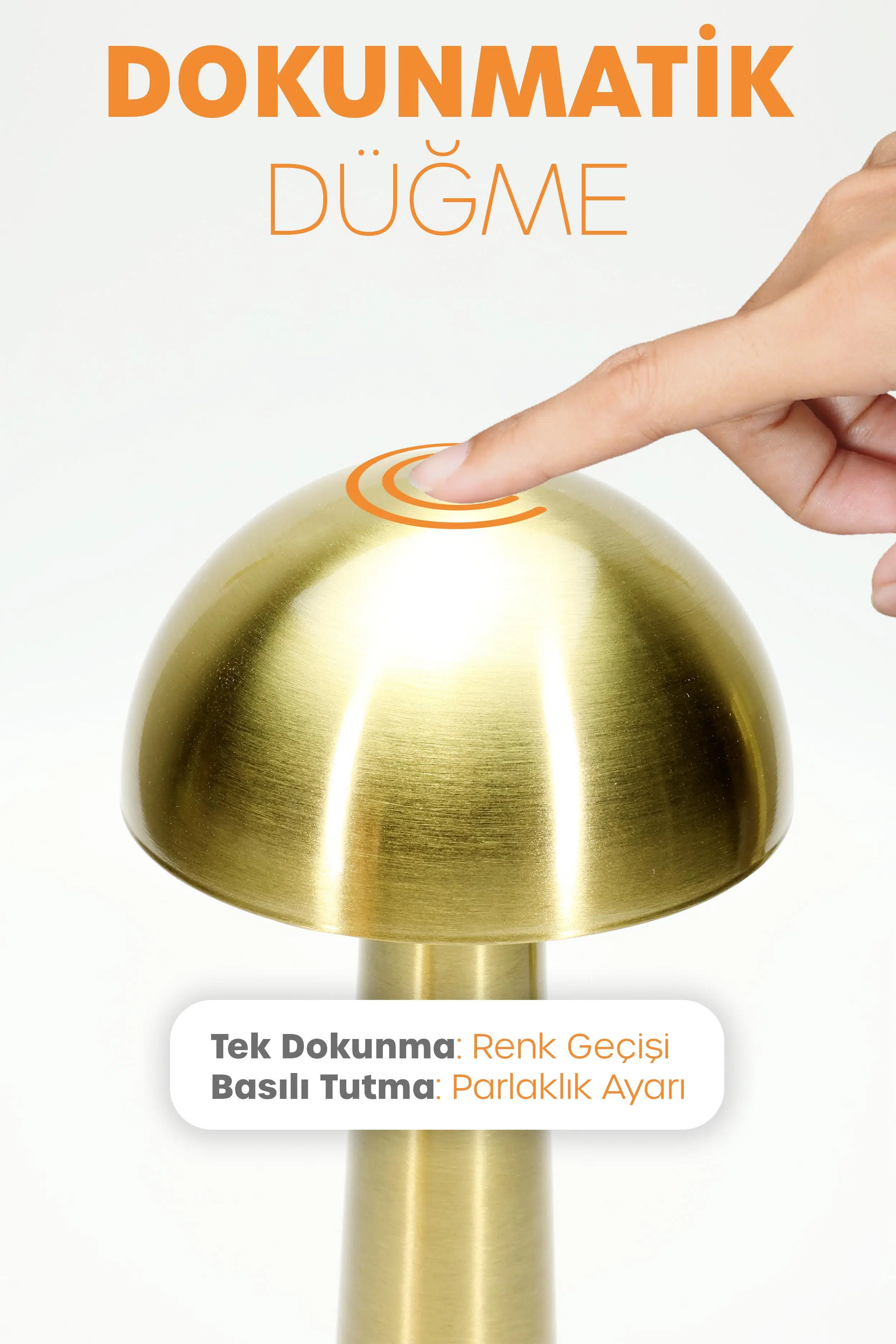 | Etiketler | Şarjlı Mantar Masa Lambası Metal Dokunmatik 3 Işık Parlaklık Ayarlı Gece Masa Üstü Lamba Gold A4 |