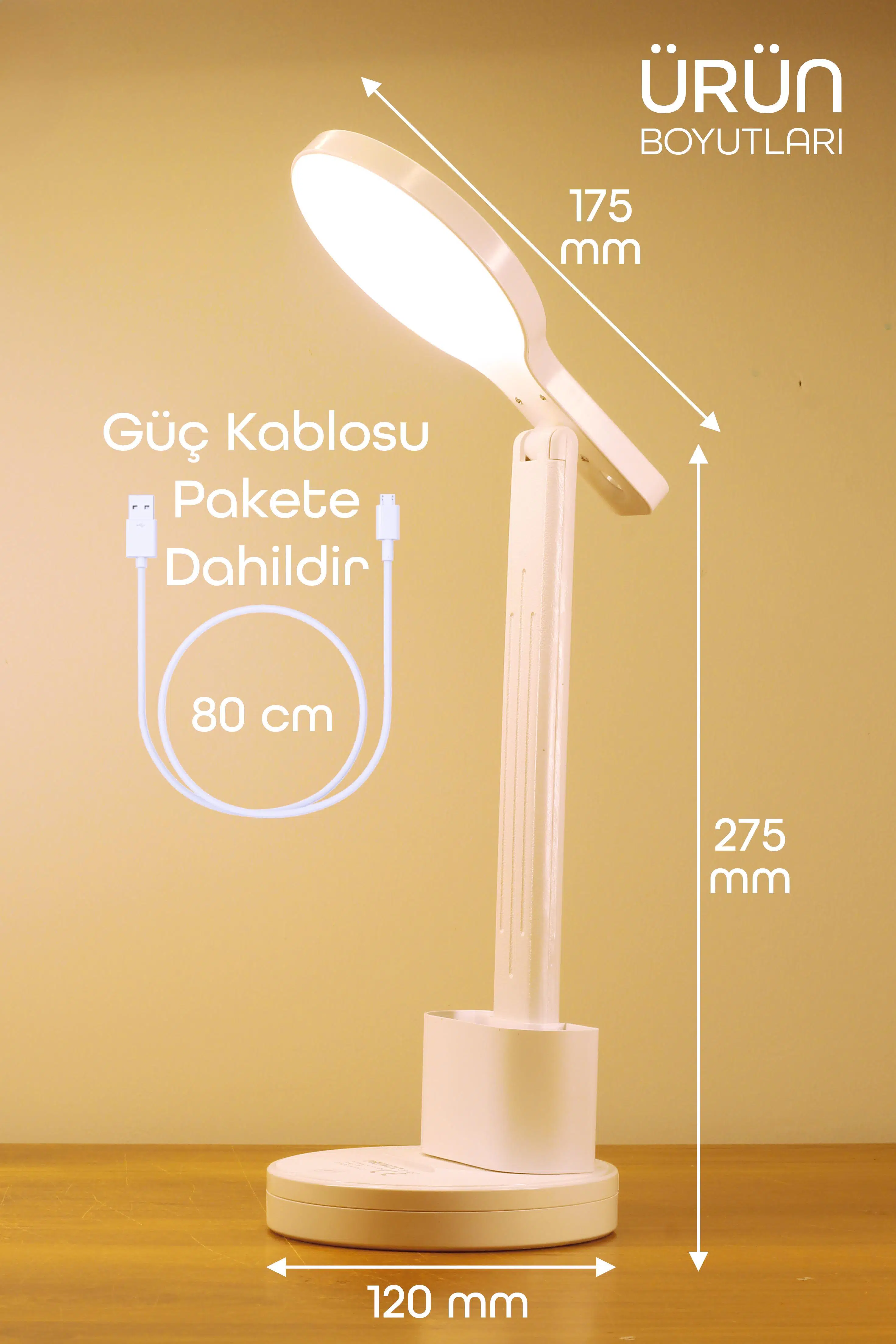 Bu çok fonksiyonlu masa lambası, çalışma alanınızı düzenli ve aydınlık tutmak için tasarlanmıştır. Ayarlanabilir ışık şiddeti, 180 derece dönebilen başlık, entegre telefon standı ve kalemlik gibi özellikleriyle kullanıcı dostu bir deneyim sunar.