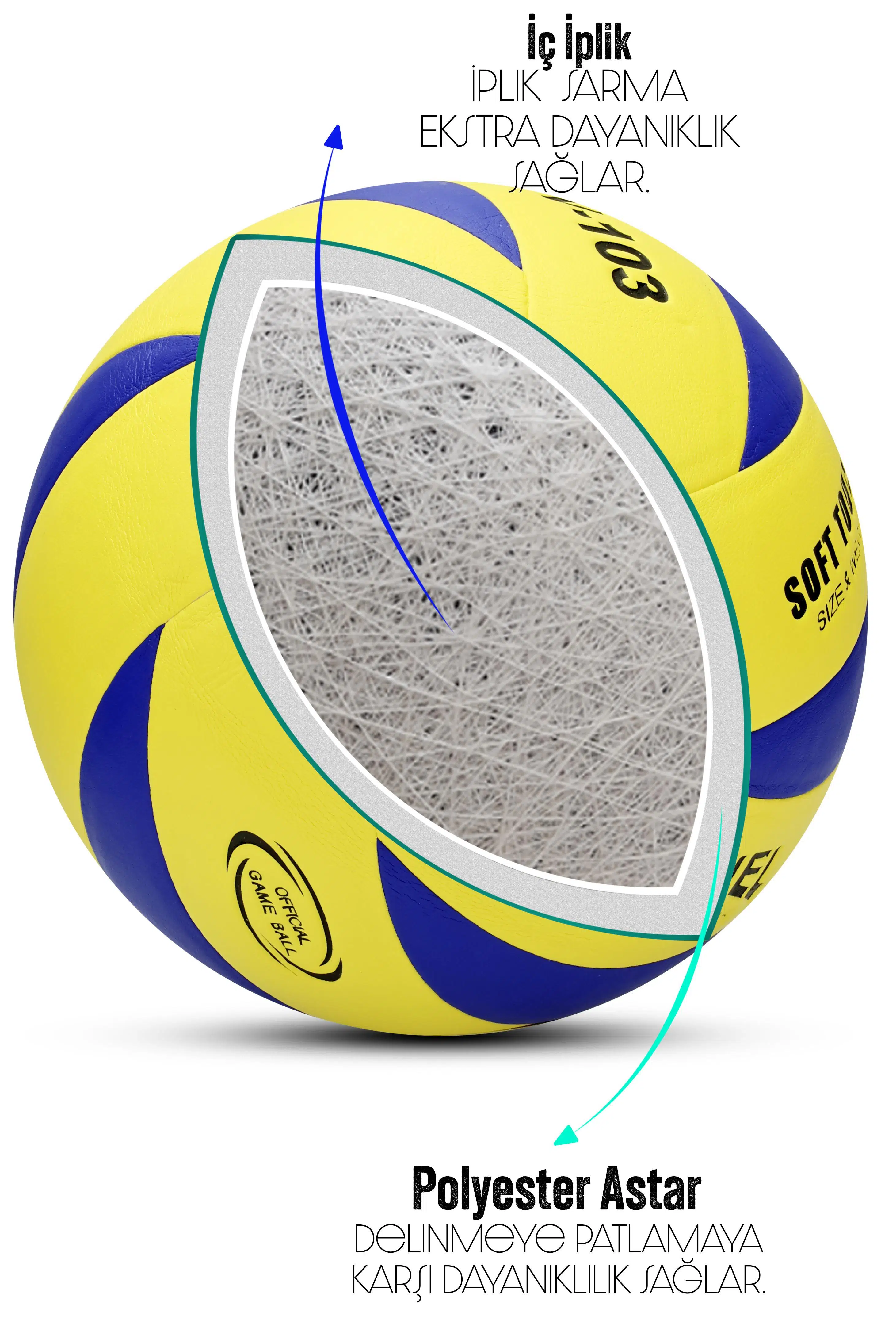 Etiketler | SEMİ-PRO Voleybol Topu Lamineli Beton Zemin SoftTouch İç-Dış Mekana Uygun 8 Panel Sarı-Mavi GSV103 |