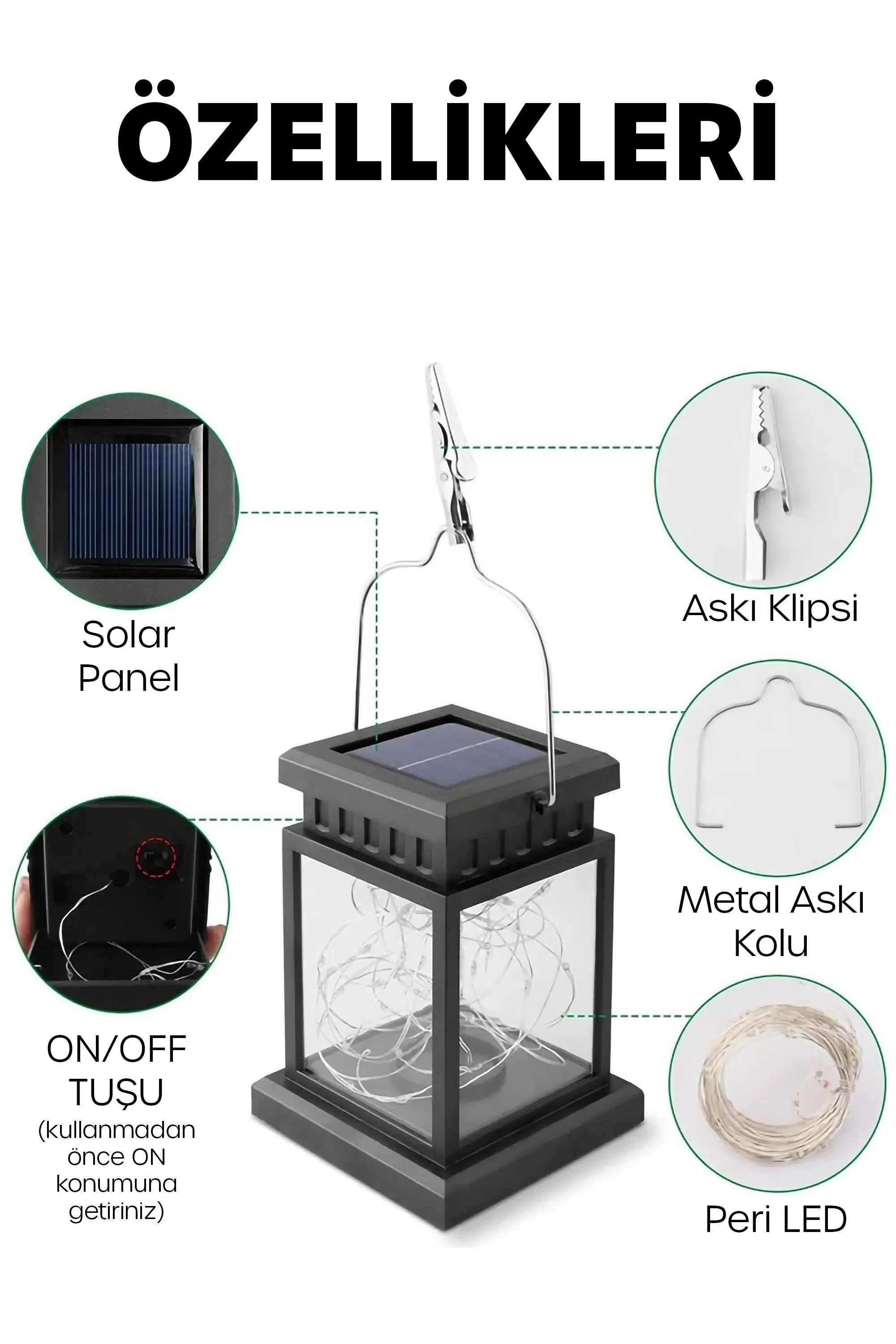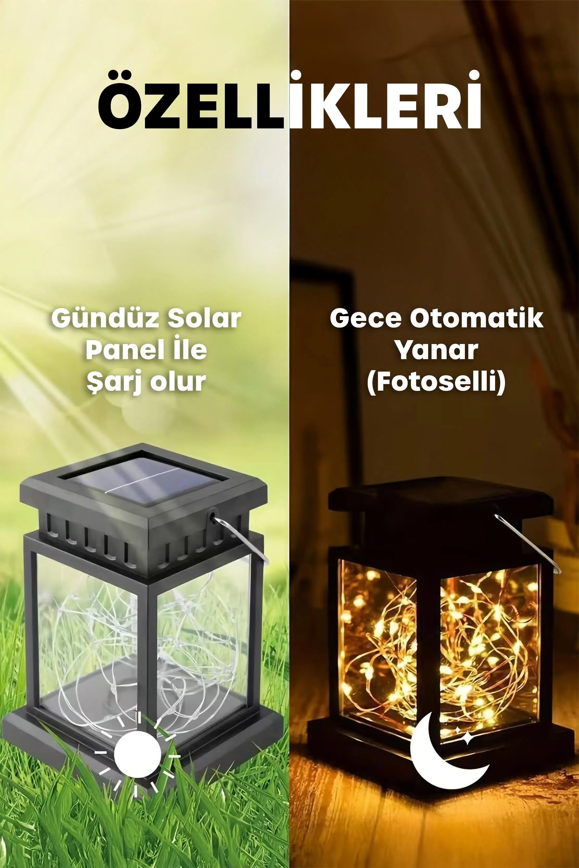 Solar Şarjlı Dekoratif Bahçe Feneri – Peri LED Işıklı (Fotoselli)