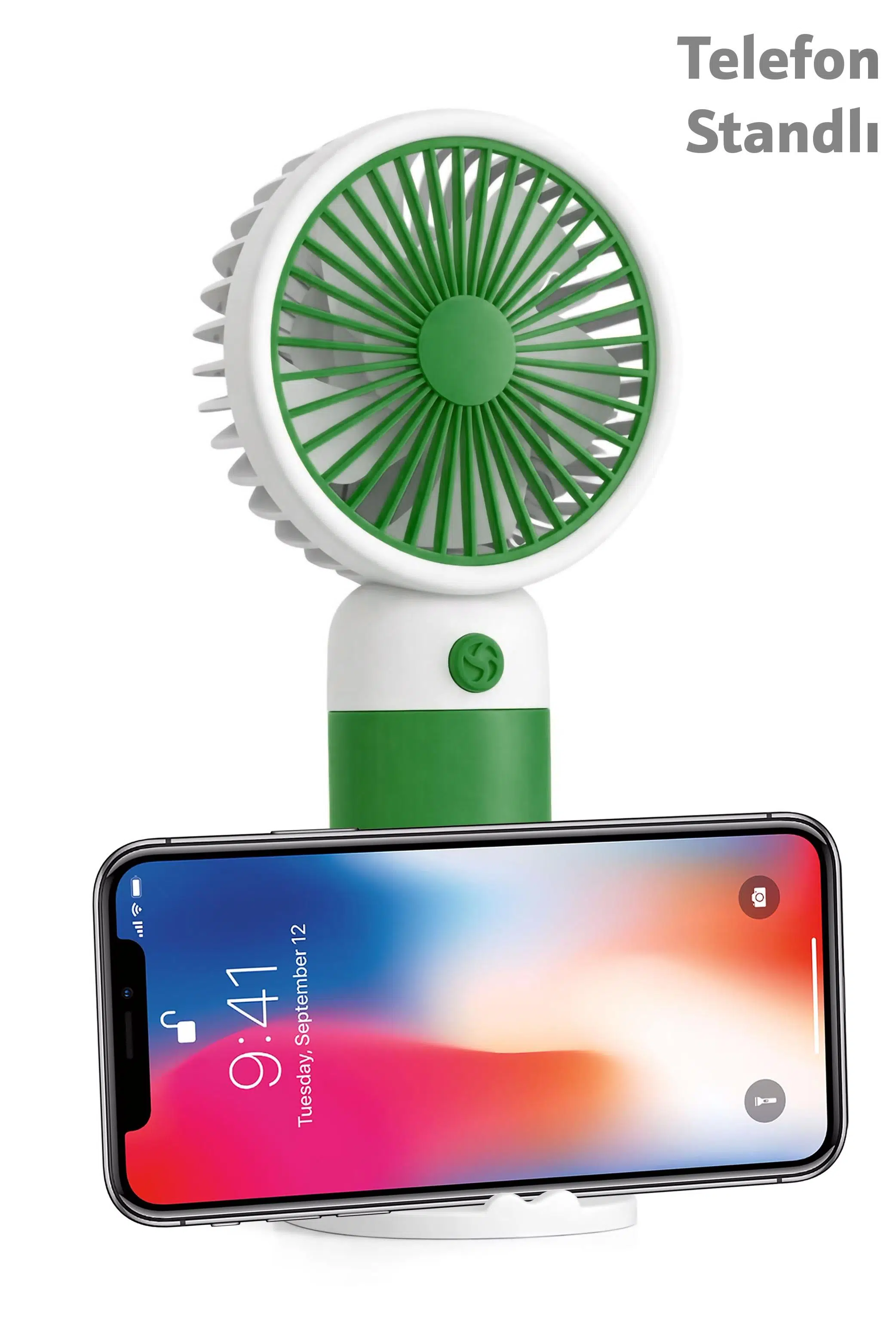 Ürünün en güçlü avantajlarından biri telefon standlı tabanıdır. Fanı standına yerleştirip telefonu stand çentiğine koyarak masada kullanım sağlayabilir; dizi/film izlerken, görüntülü görüşme yaparken ya da çalışırken aynı anda serinleyebilirsiniz. Type-C şarj girişi sayesinde modern cihazlarla uyumlu şekilde kolayca şarj edilir.
