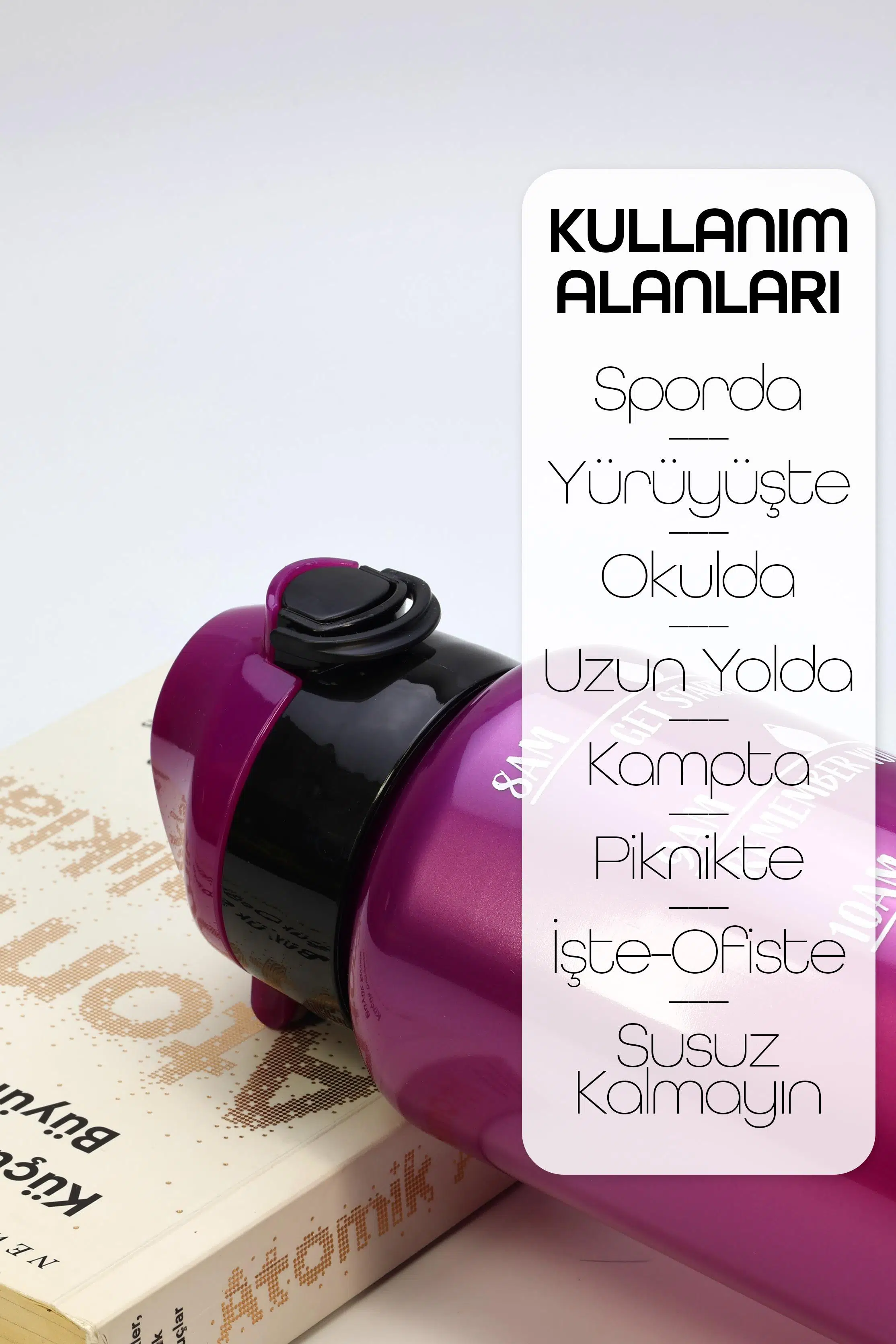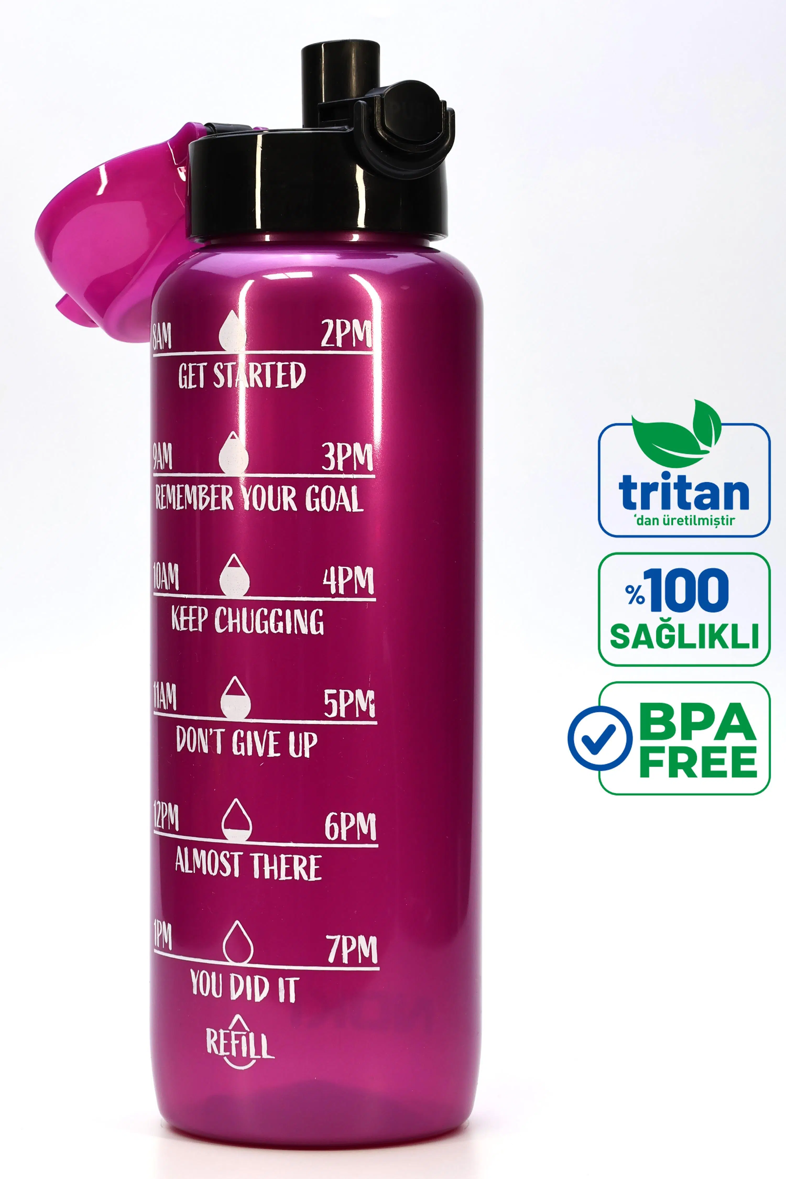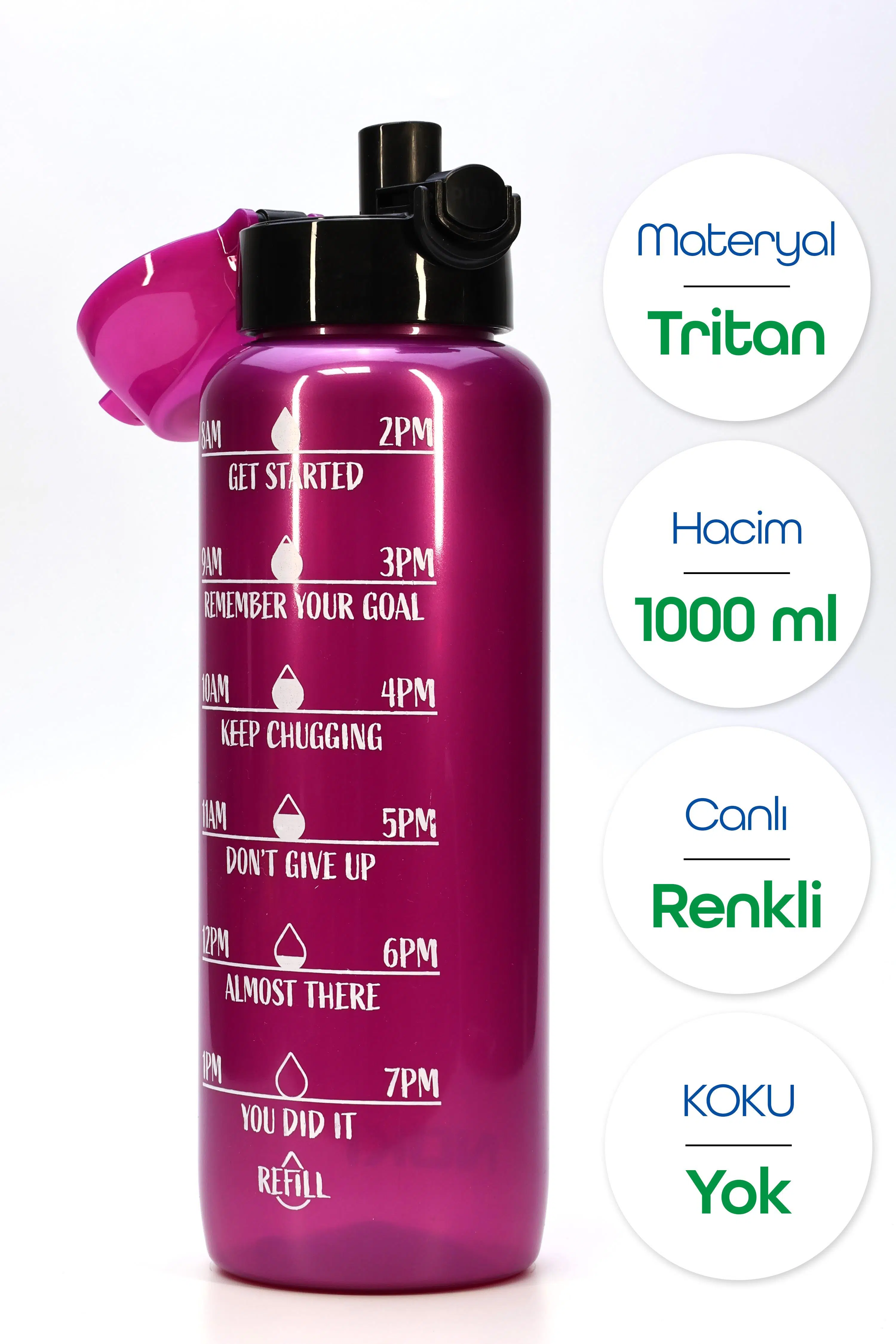 | Etiketler | Su Matarası Tritan Geniş Ağız Su Şişesi Motivasyon Spor Matarası Suluğu BPAsız 1000 mL Mor T0103 |