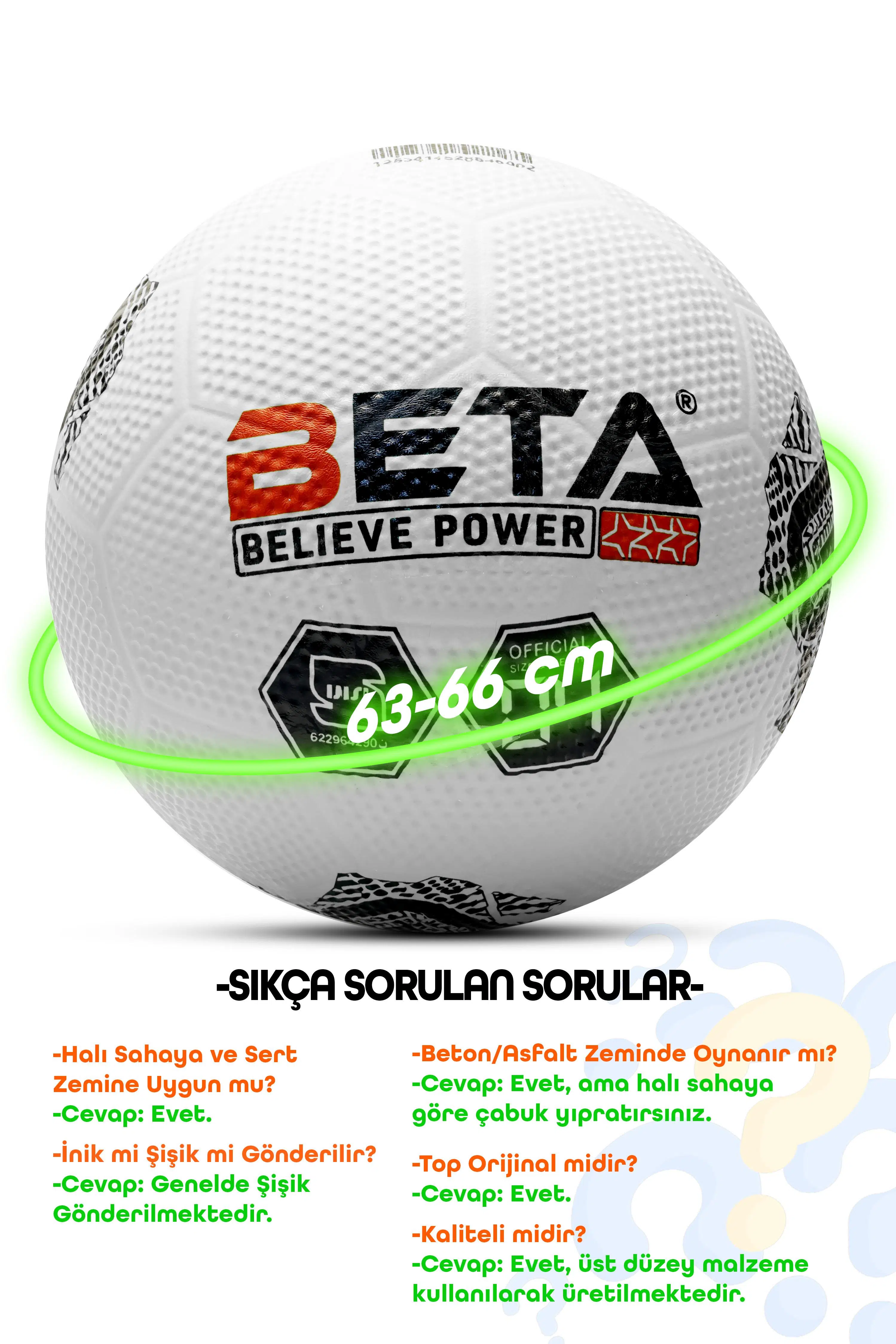 Boyutlar: Topun çevresi 63-66cm'dir.
