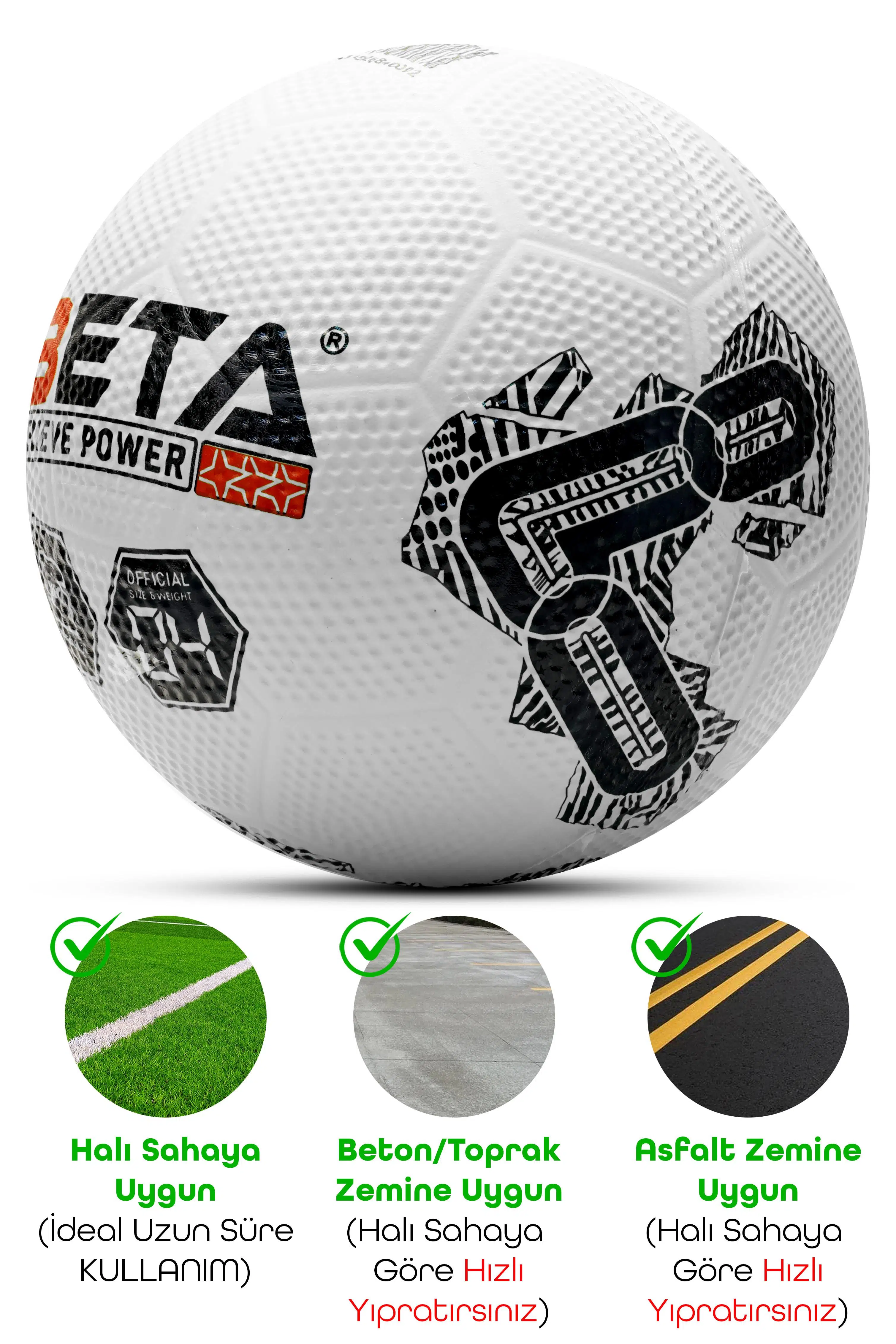 Bu futbol topu, kalın kauçuk dış katmanı sayesinde ultra dayanıklılık sağlar ve hem halı sahada hem de sert zeminlerde (beton, toprak vb.) kullanım için idealdir. Top, orijinal üretim olup güvenle tercih edebilirsiniz.