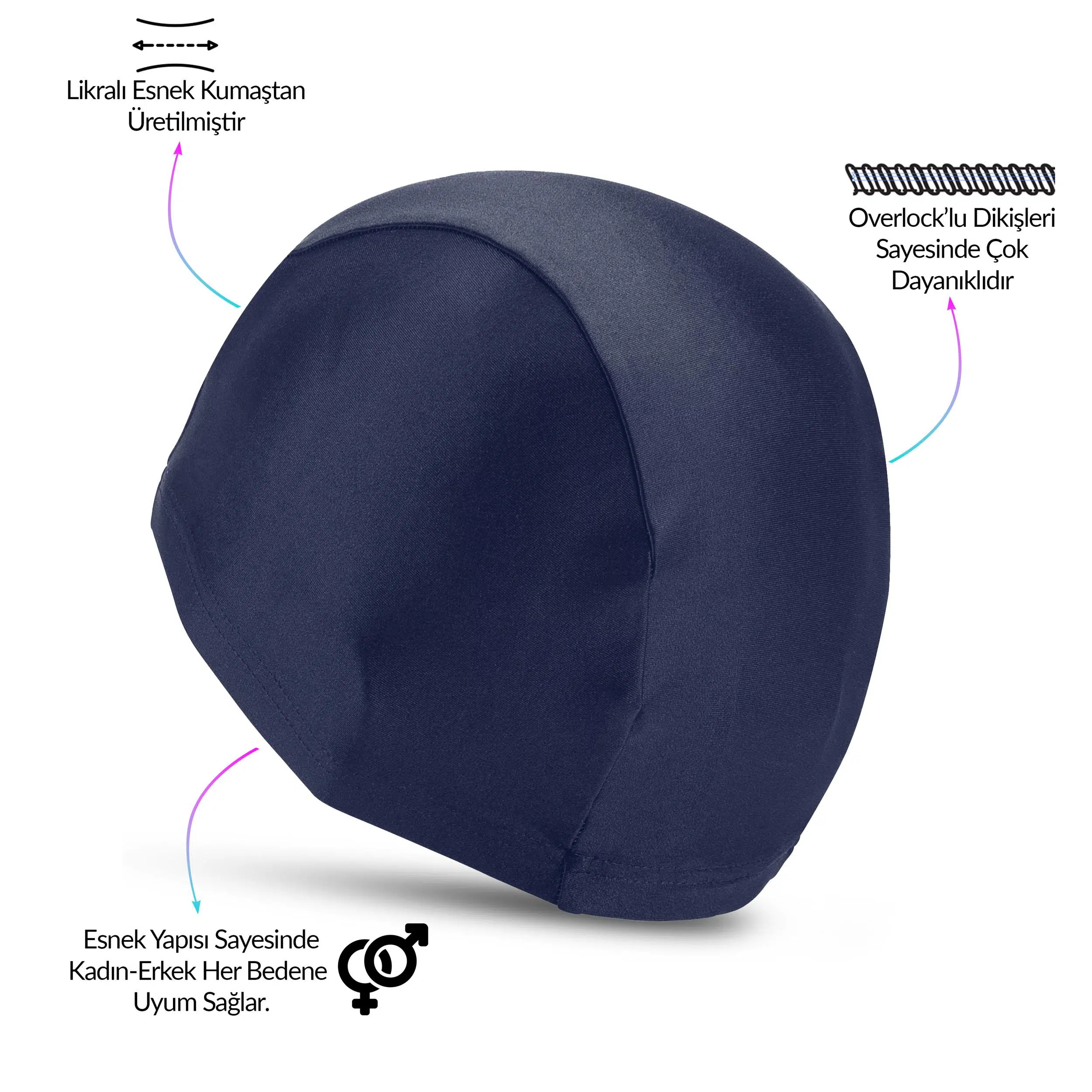 | Etiketler | Yüzücü Bonesi Likralı Esnek Kumaş Havuz Deniz Yüzme Bonesi Bez Bone Lacivert |